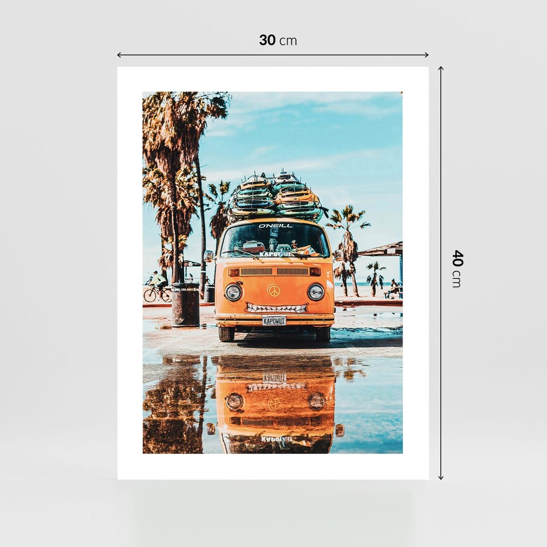 Plakat bez ramy 30x40 - Wakacje na Kółkach - kamper, deski surfingowe na dachu