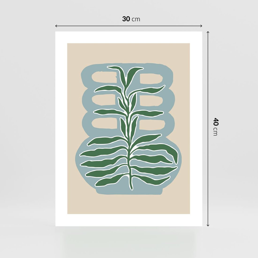 Ten abstrakcyjny plakat w boho stylu prezentuje liście w wazonie, ukazując ich piękno w stonowanych odcieniach. Sztuka ta wprowadza do Twojego wnętrza harmonię natury i estetyki, tworząc subtelny akcent, który wpasuje się w boho atmosferę salonu czy innego pomieszczenia.