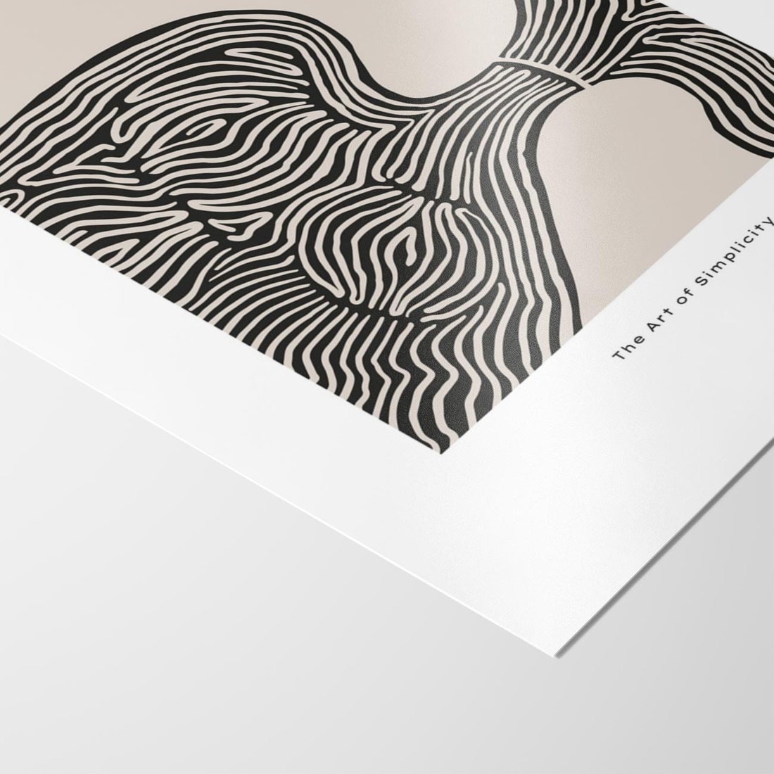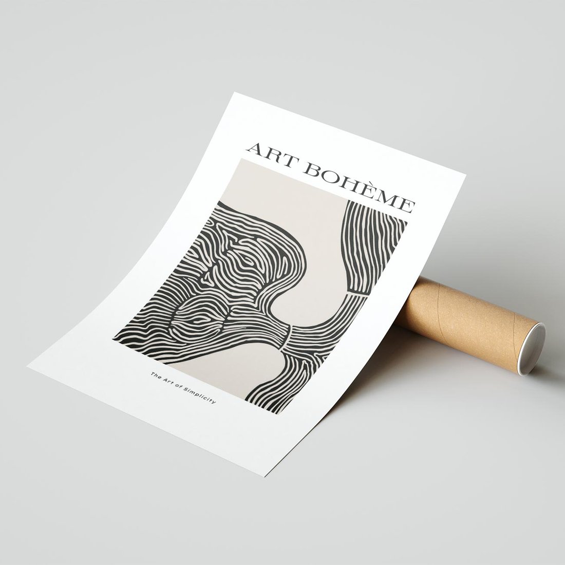 To sztuka minimalizmu łącząca białą i czarną rycinę w abstrakcyjnym stylu. Wprowadza ona subtelny akcent boho, ukazując harmonię i prostotę w formie artystycznej. To dzieło inspiruje do refleksji, tworząc jednocześnie przestrzeń do interpretacji i odkrywania własnych znaczeń.
