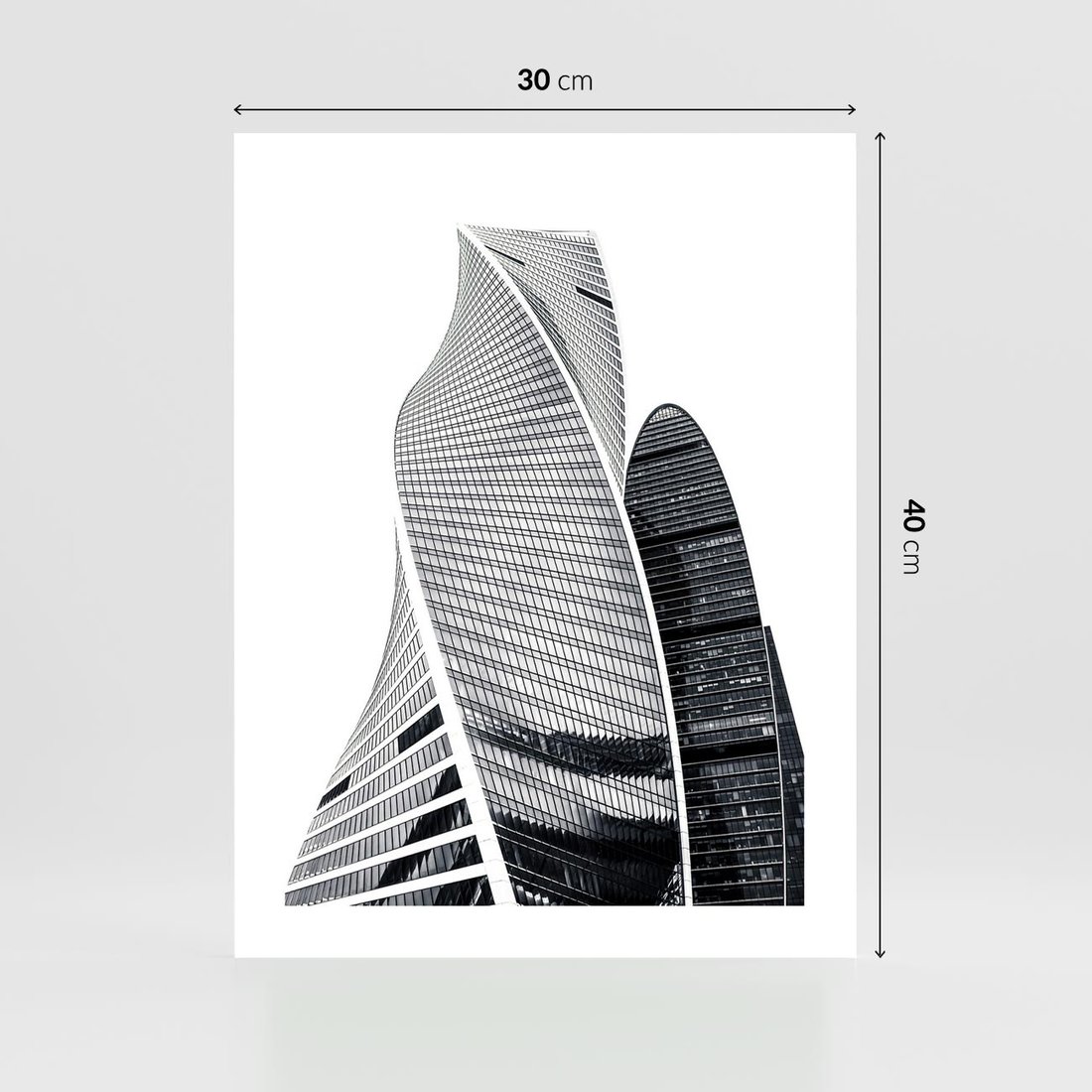 Plakat bez ramy 30x40 - Wieżowce z Falistymi Kształtami - nowoczesne wieżowce, czarno biała fotografia