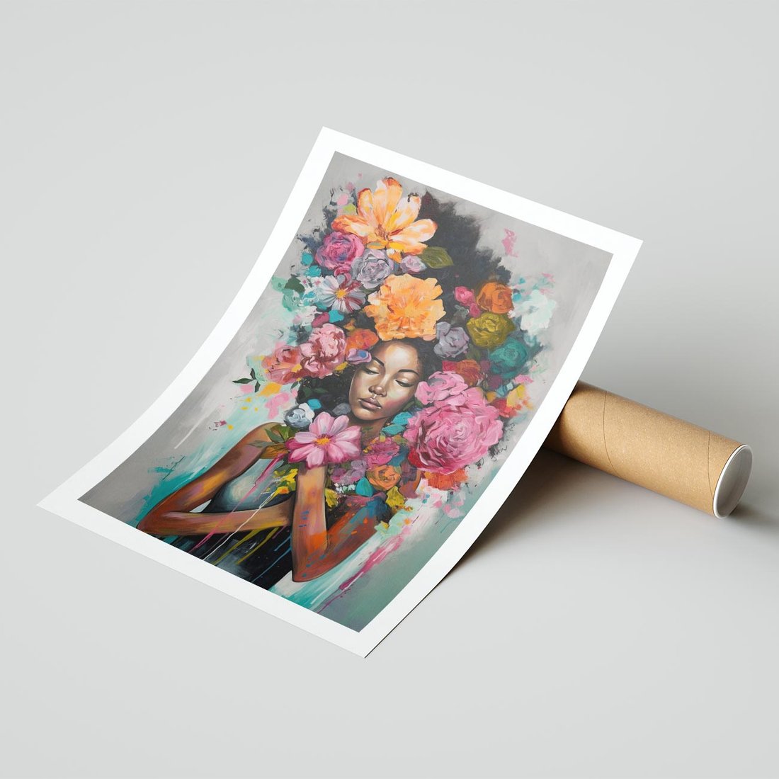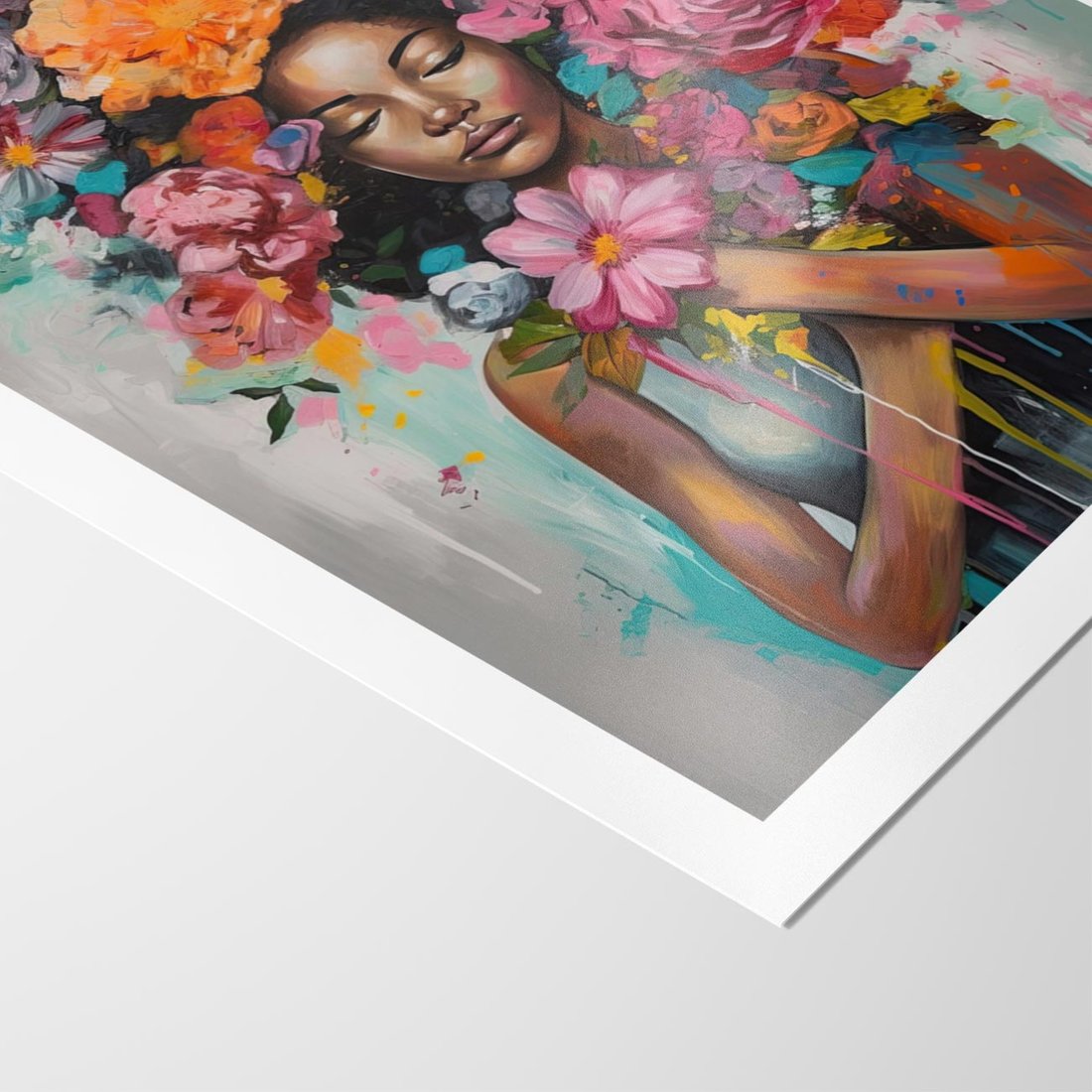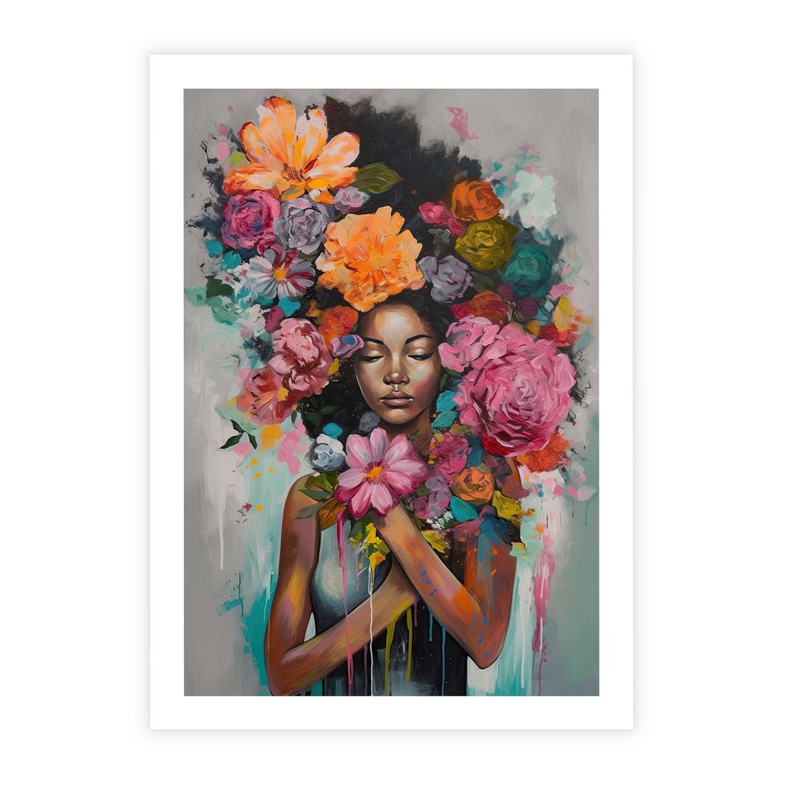 Plakat bez ramy 30x40 - Z Głową w Kwiatach - obraz olejny, sztuka nowoczesna