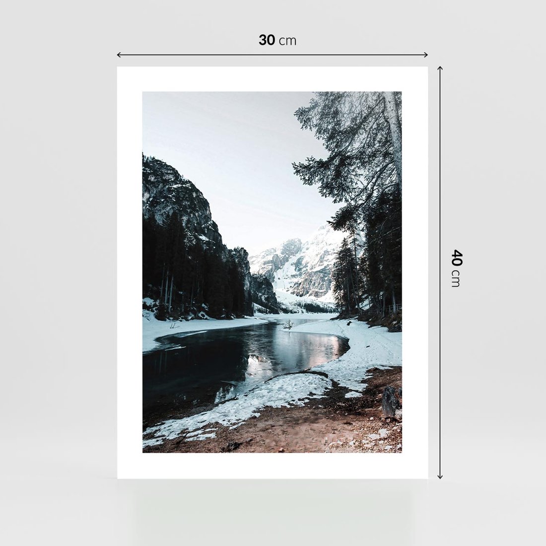 Plakat bez ramy 30x40 - Zamarznięta Rzeka - zima w górach, zamarznięta rzeka