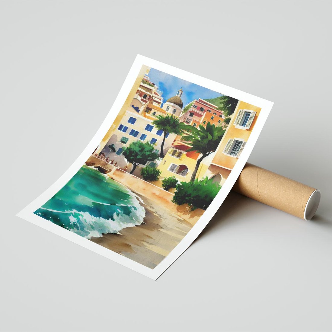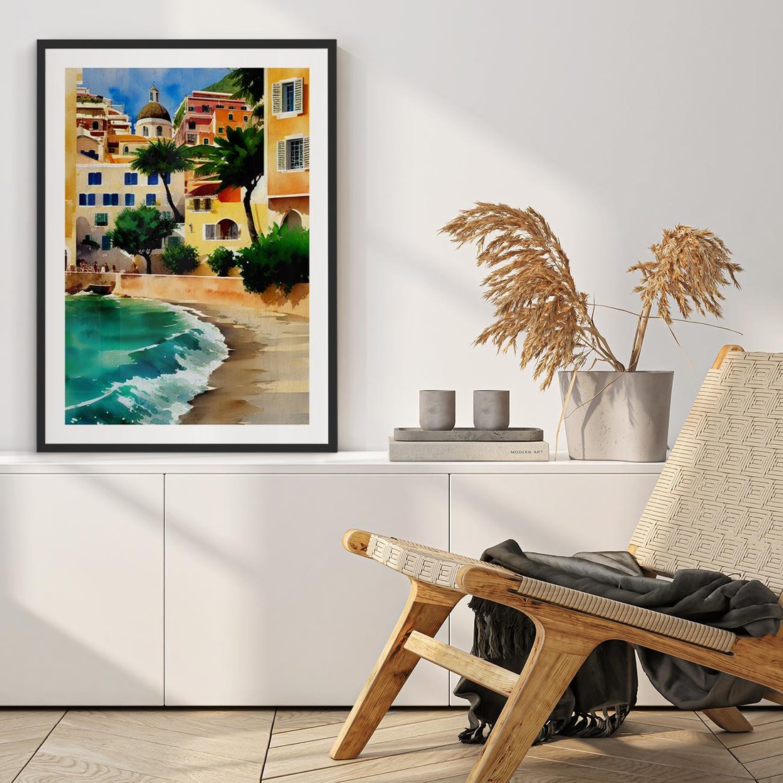 Plakat bez ramy 30x40 - Zamieszkajmy Tu - akwarela, śródziemnomorski klimat