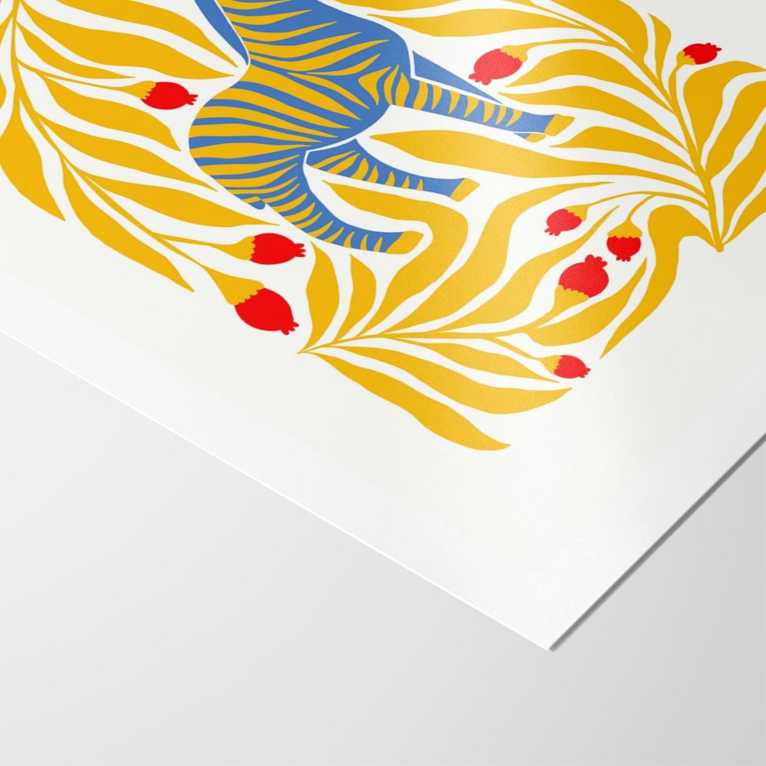 Ta unikalna abstrakcyjna grafika ukazuje zebrę w minimalistycznym stylu, w odcieniach żółtego i niebieskiego. Tworzy ona efektowną kompozycję, która wzbudza zainteresowanie i zachwyca nowoczesnym wyrazem.