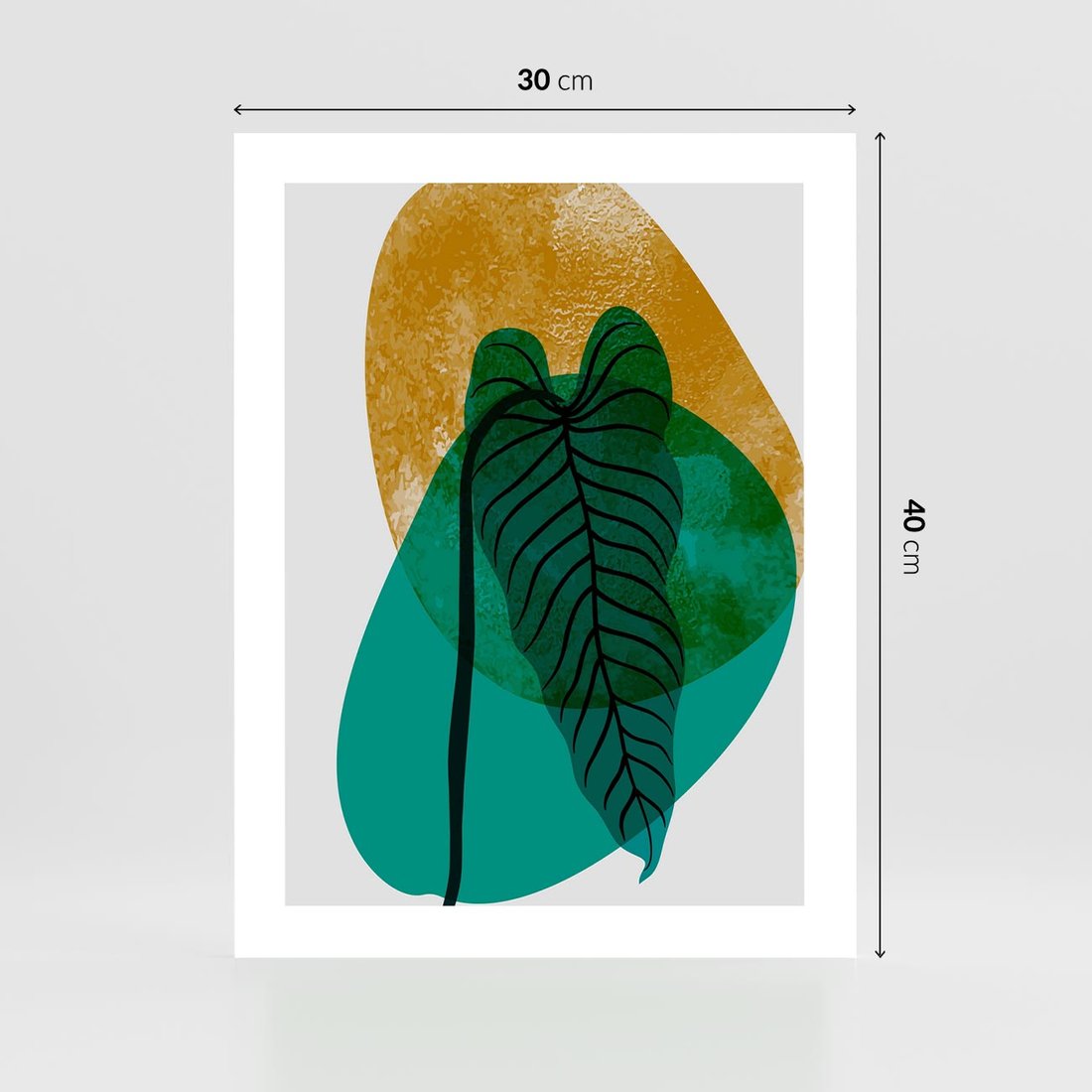 - Plakat bez ramy 30x40 - Zielony Liść ze Złotą Plamą