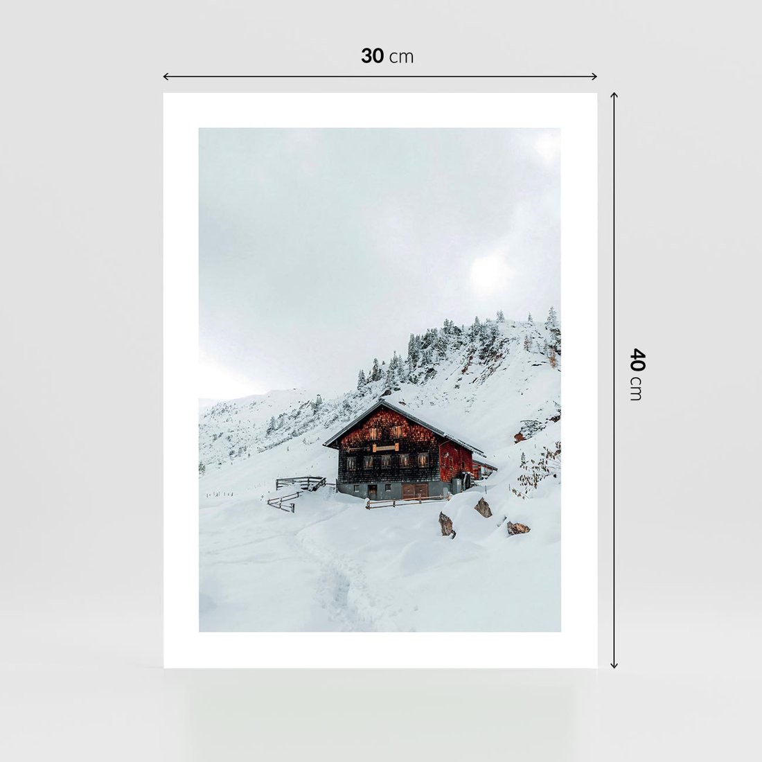 Plakat bez ramy 30x40 - Zimowa Magia - domek, śnieg