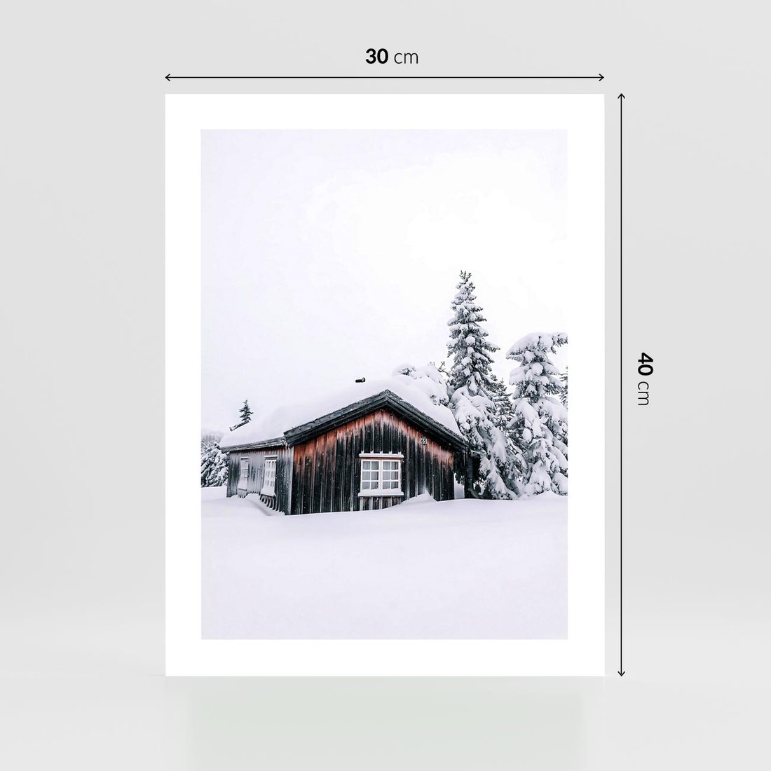 Plakat bez ramy 30x40 - Zimowy Azyl: Domek w Górach - domek w górach, śnieg