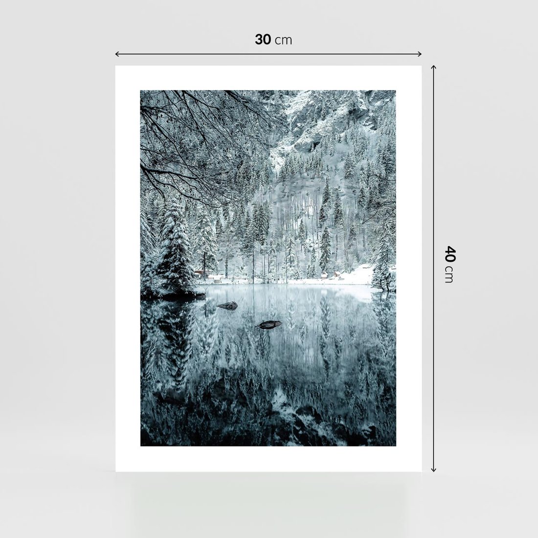Plakat bez ramy 30x40 - Zimowy Raj - zimowy górski krajobraz, jezioro w górach