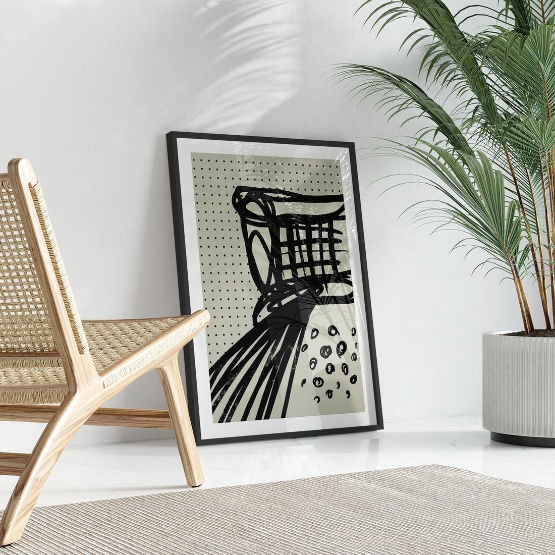 Nasz abstrakcyjny plakat to zaskakująca mroczna kompozycja, w której nieregularne i dziwne kształty układają się w pasjonującą opowieść. To wyraz nowoczesnej sztuki, gdzie granice konwencji zostają przekroczone, prowokując wyobraźnię i wywołując emocje. Ta unikalna dekoracja jest dla tych, którzy poszukują odważnych i nowatorskich wyzwań w sferze wizualnej sztuki.