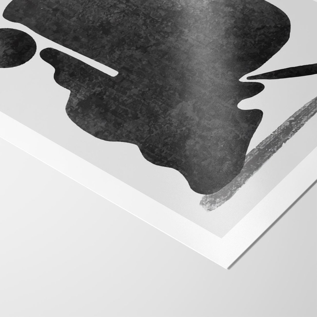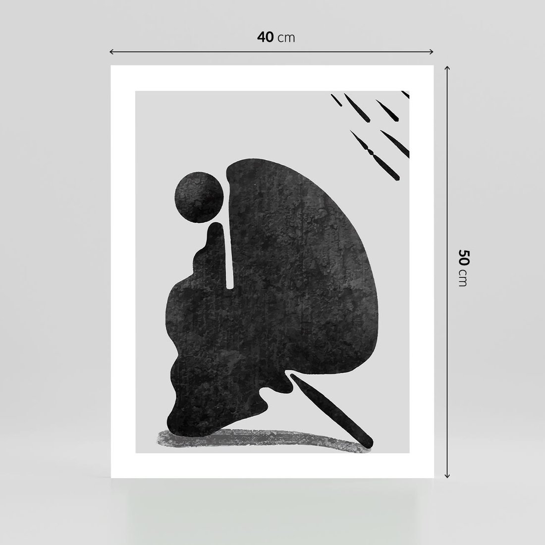 Abstrakcyjny plakat inspirowany japońską sztuką, przedstawiający czarną postać w formie minimalistycznego i artystycznego motywu.