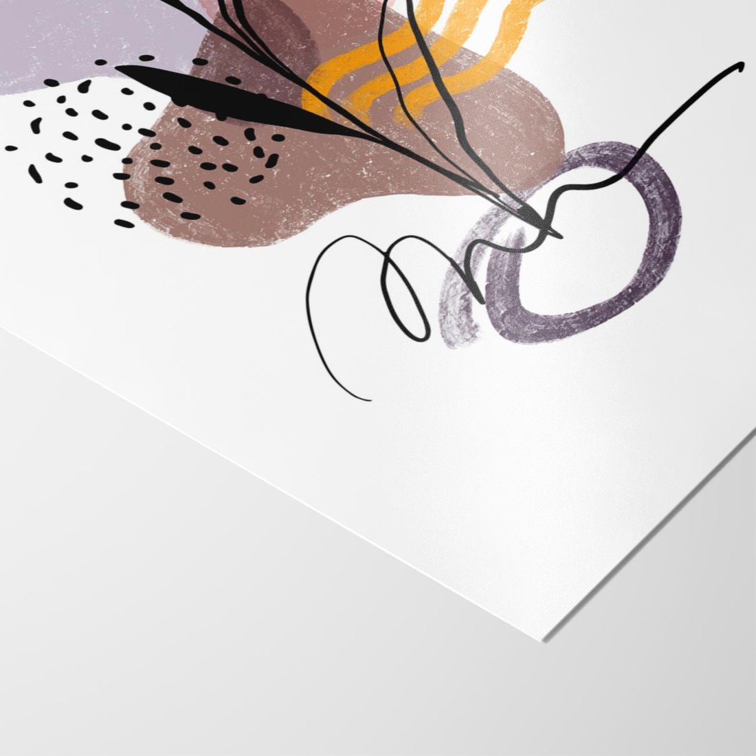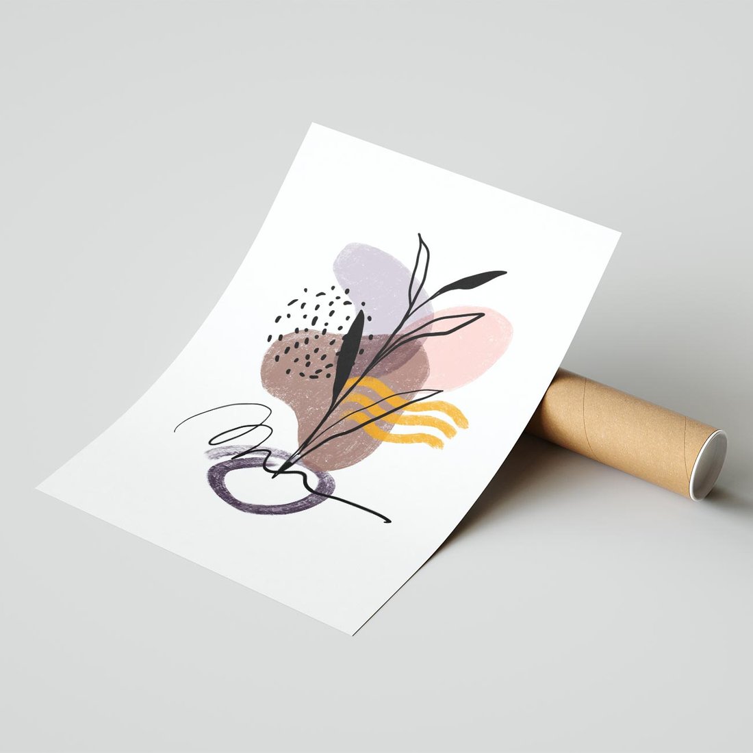 Nasza sztuka abstrakcyjna to połączenie nowoczesności i natury, prezentujące elementy roślinne w formie czarnego szkicu z akwarelowymi plamami. To twórcze połączenie wprowadza do Twojej przestrzeni unikalny wyraz artystyczny, który łączy różnorodność form i stylów.