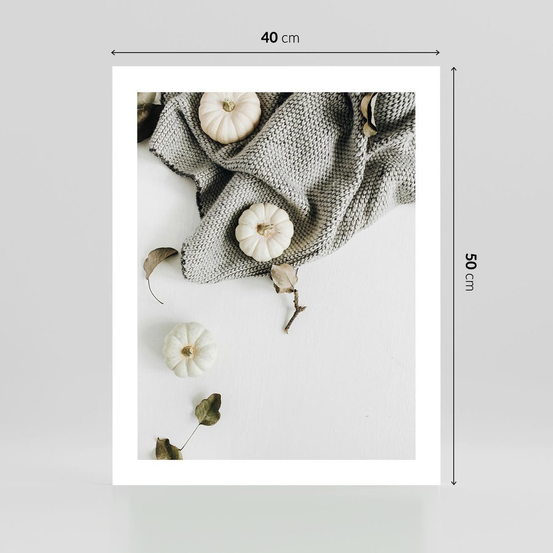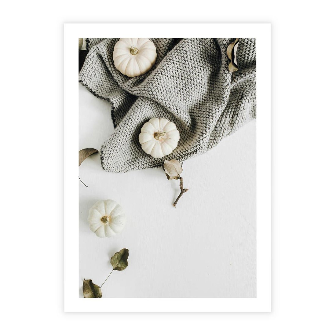 - Plakat bez ramy 40x50 - Białe Dynie i Przytulny Koc