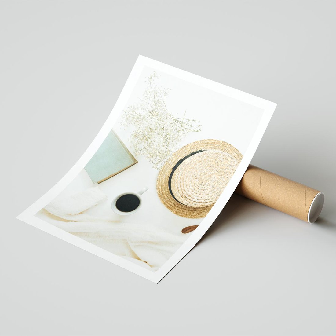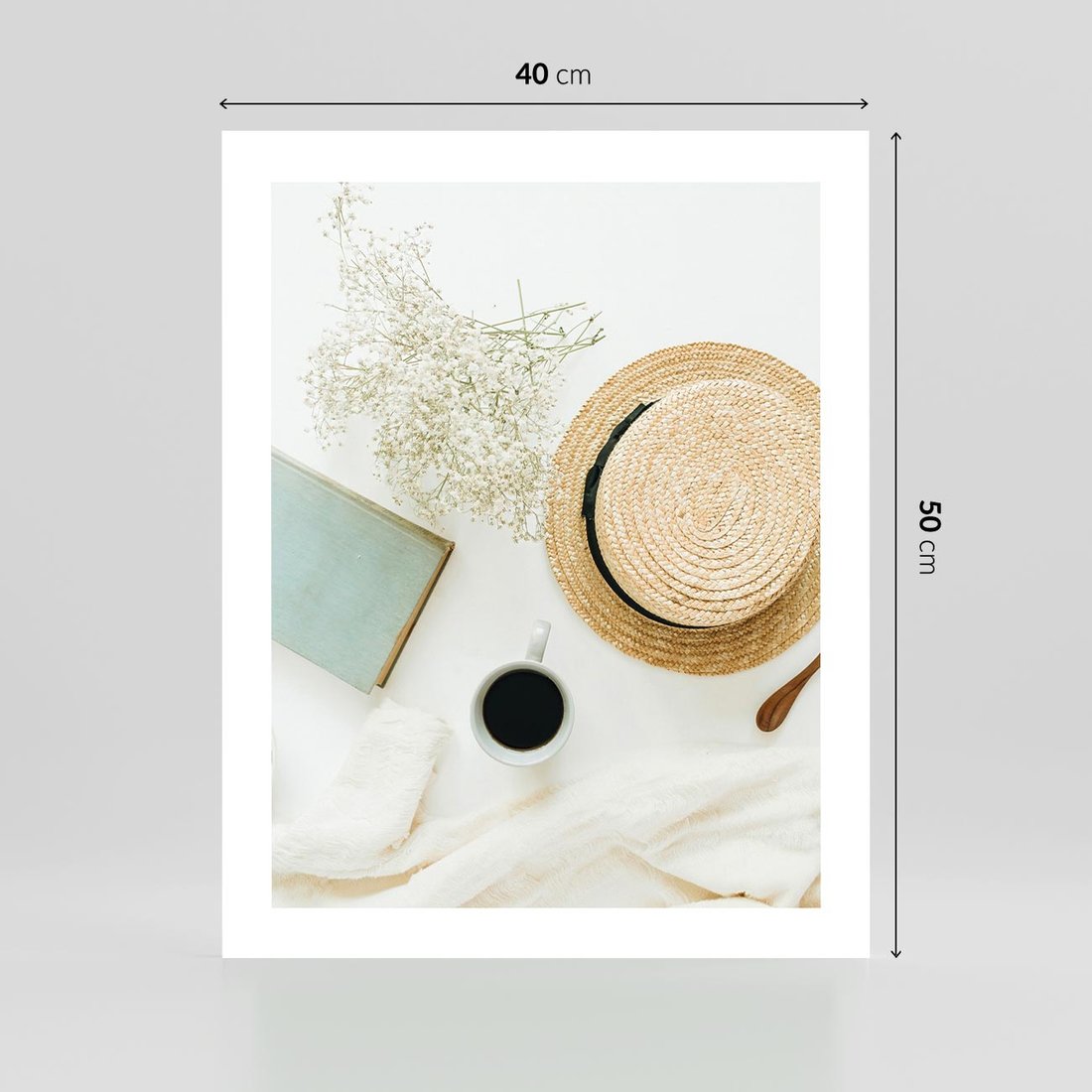 Plakat bez ramy 40x50 - Boho Urok - kompozycja boho, slomkowy kapelusz