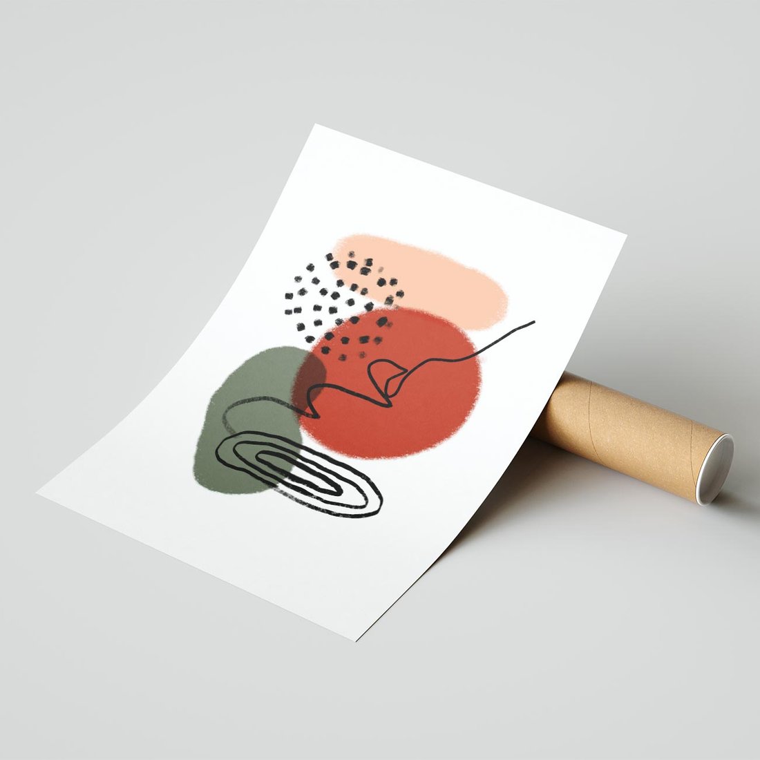 Nasza abstrakcyjna sztuka łączy boho kształty z minimalizmem, idealnie pasując do nowoczesnych wnętrz. To twórcze połączenie wprowadza do Twojej przestrzeni unikalny charakter i wyraz artystyczny, zachwycając jednocześnie prostotą i harmonią.