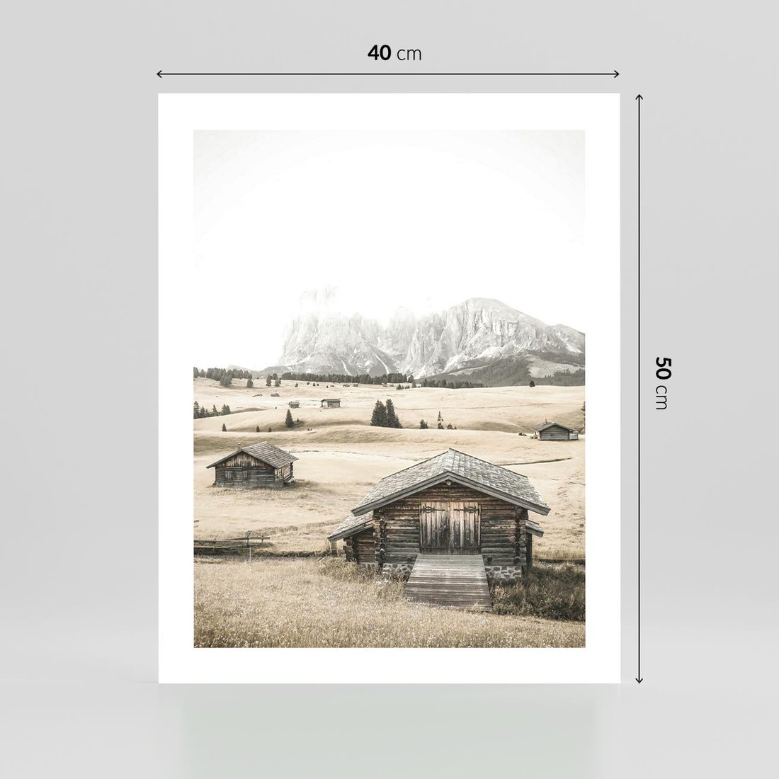 Plakat bez ramy 40x50 - Chatka w Górskiej Sepii - domek w górach, chatka