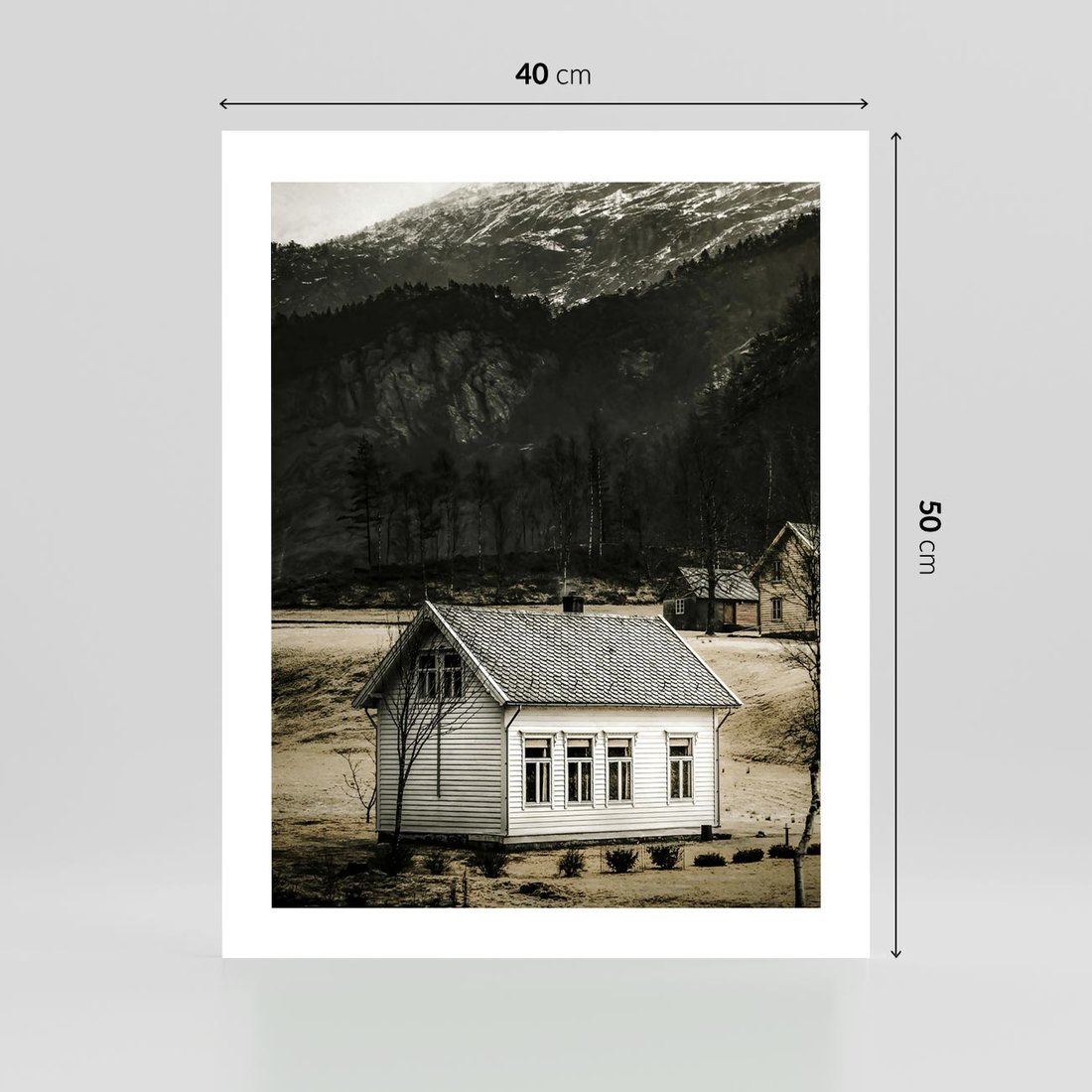Plakat bez ramy 40x50 - Ciepło i Urok Górskiego Domku - domek w górach, sepia