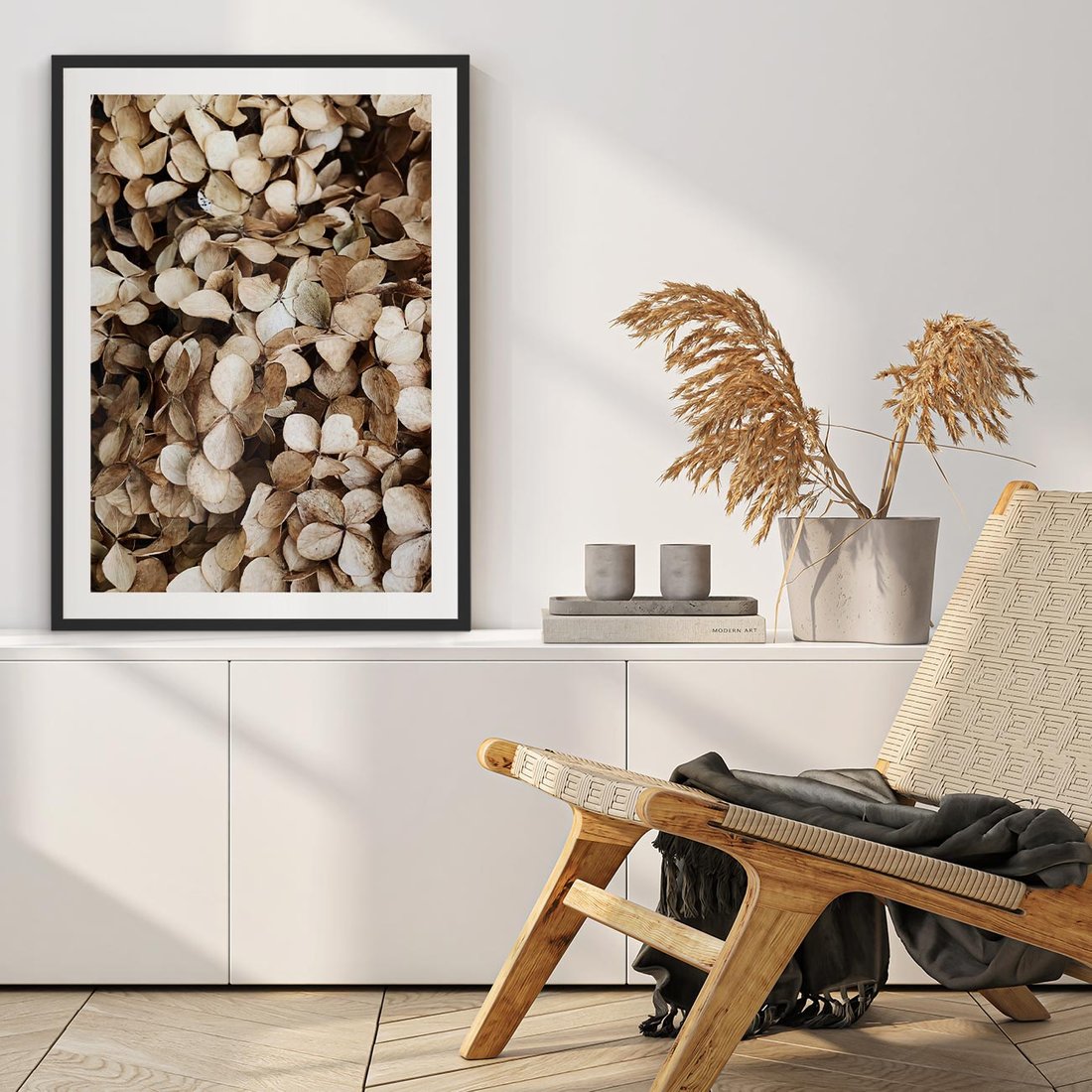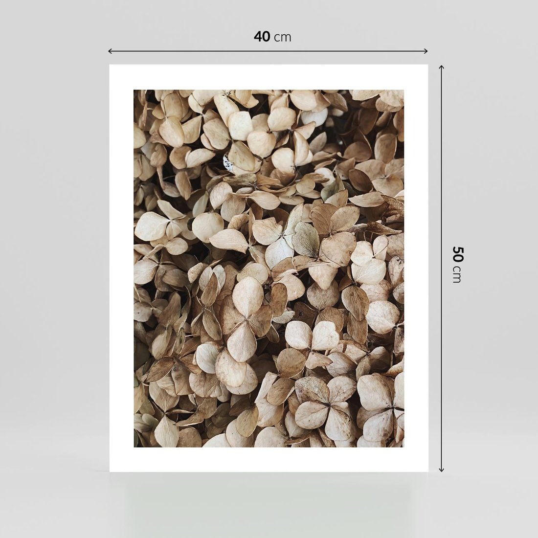 - Plakat bez ramy 40x50 - Delikatność Hortensji: Kompozycja Kwiatów w Beżu