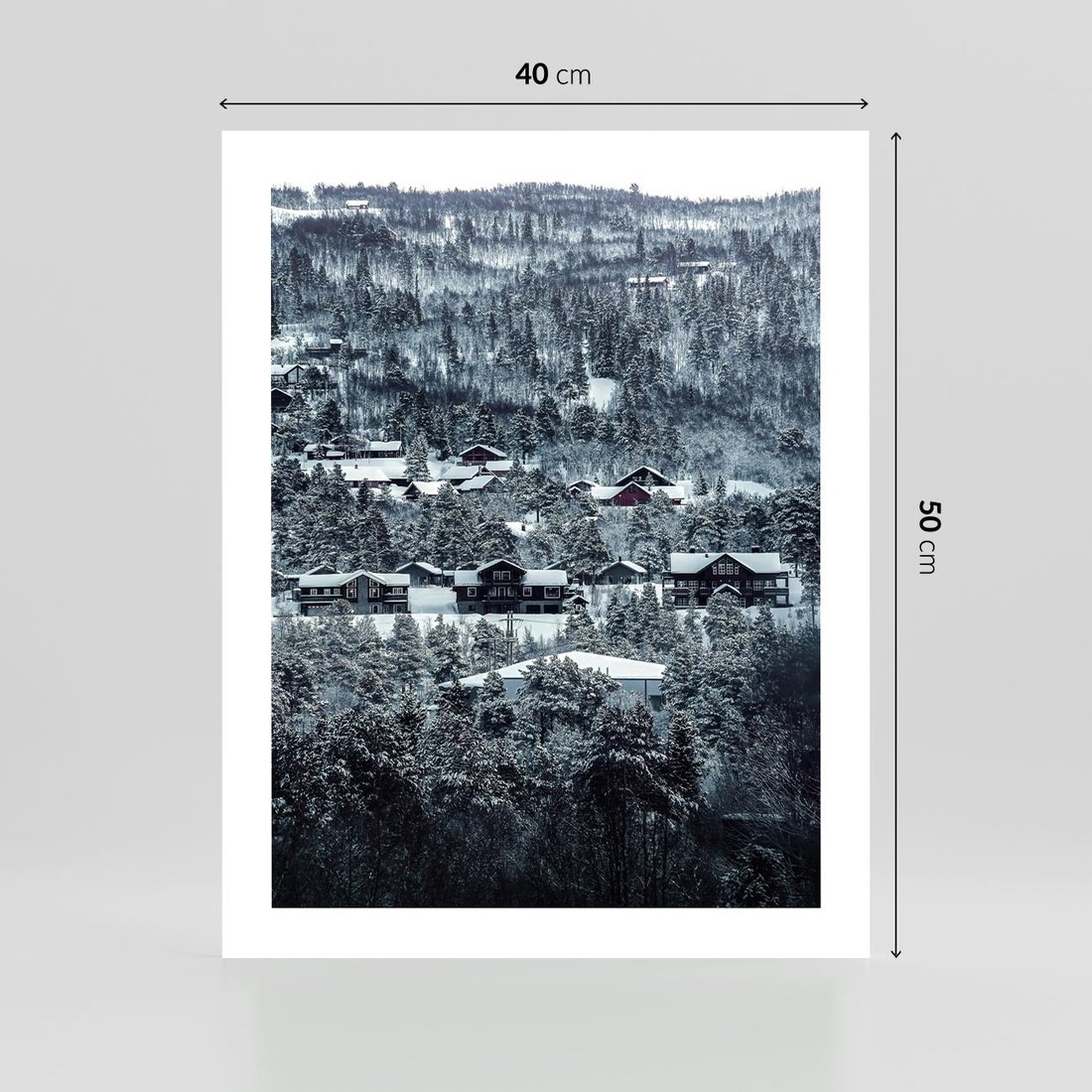 Plakat bez ramy 40x50 - Domki w Chmurach - górski zimowy krajobraz, dommki na wzgórzach