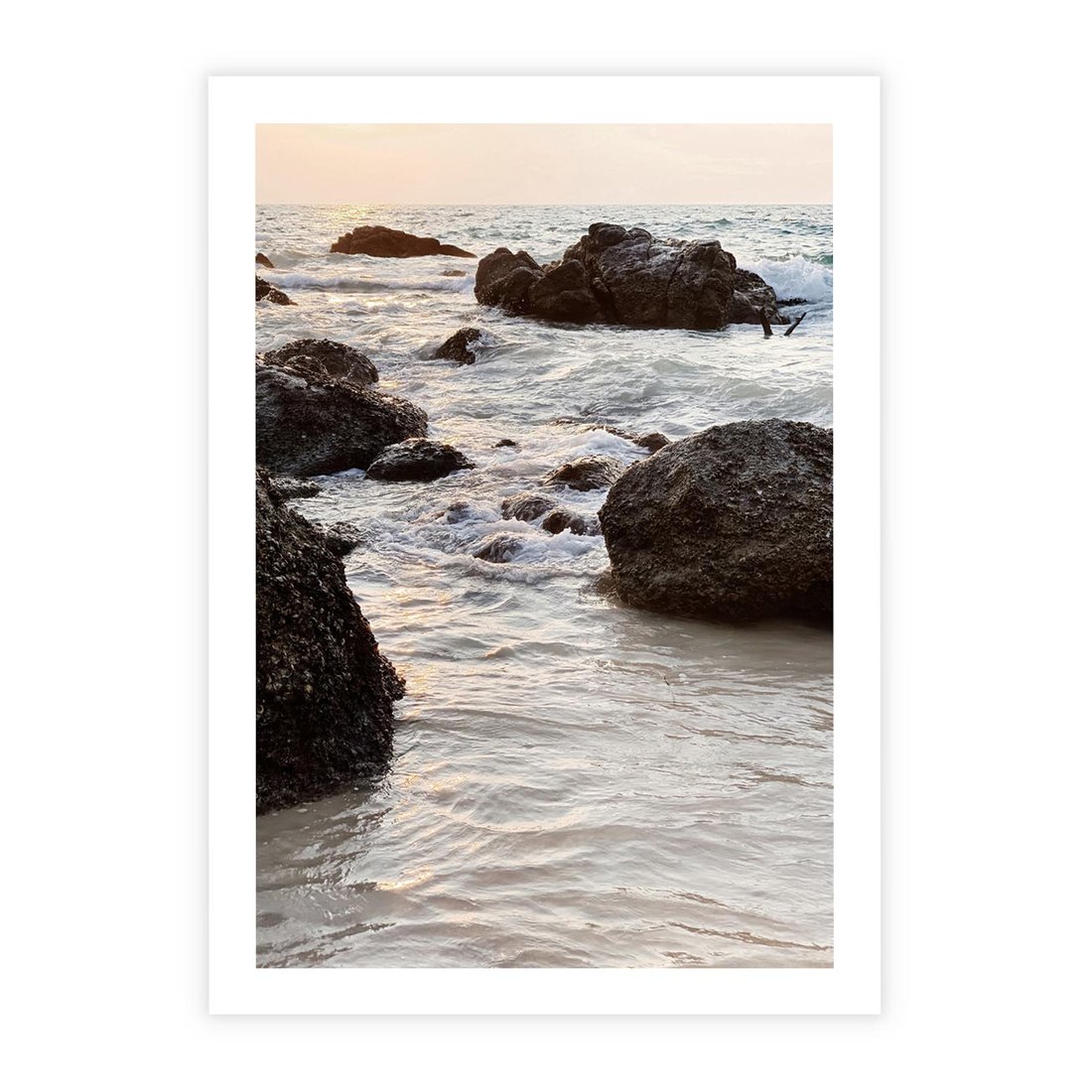 - Plakat bez ramy 40x50 - Dramatyczna Sceneria: Morze i Skały nad Brzegiem