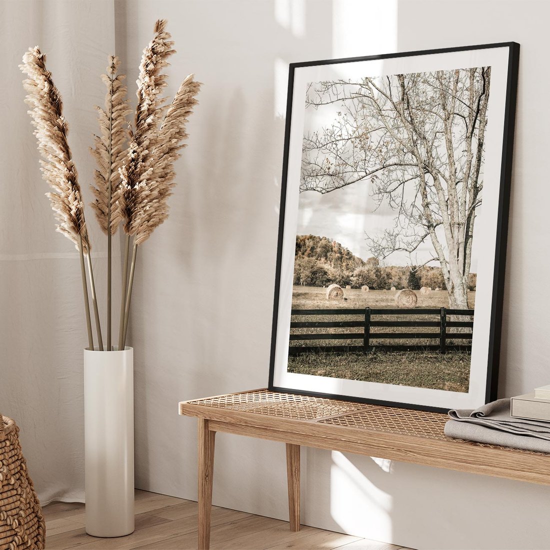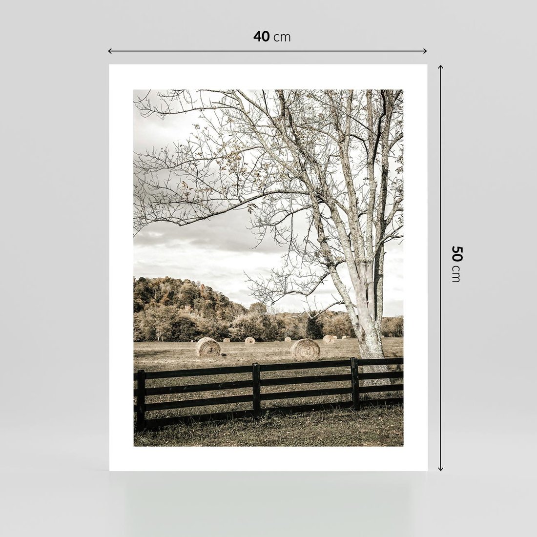 Plakat bez ramy 40x50 - Drzewa i Snopki Siana - farma, drzewa