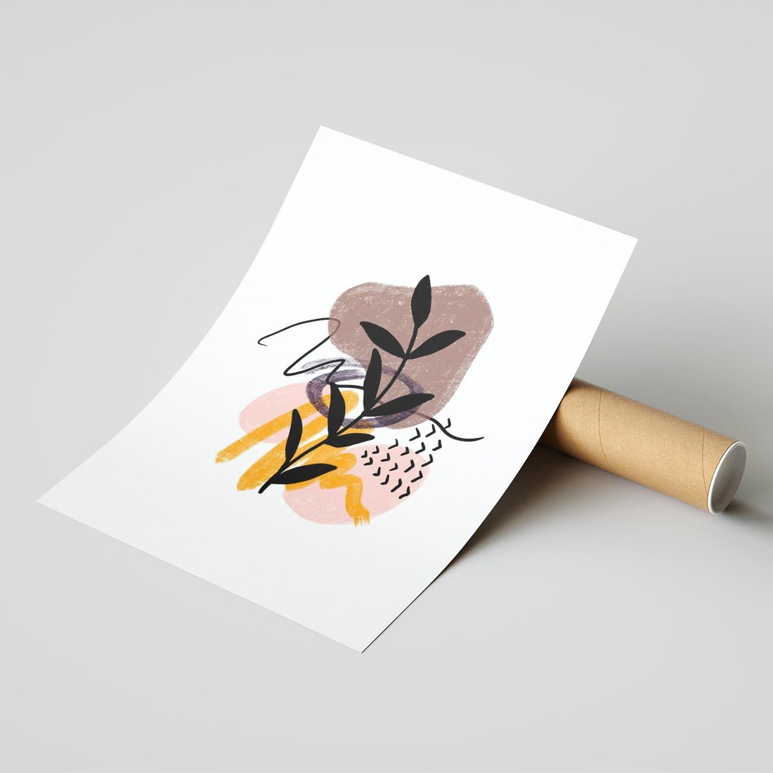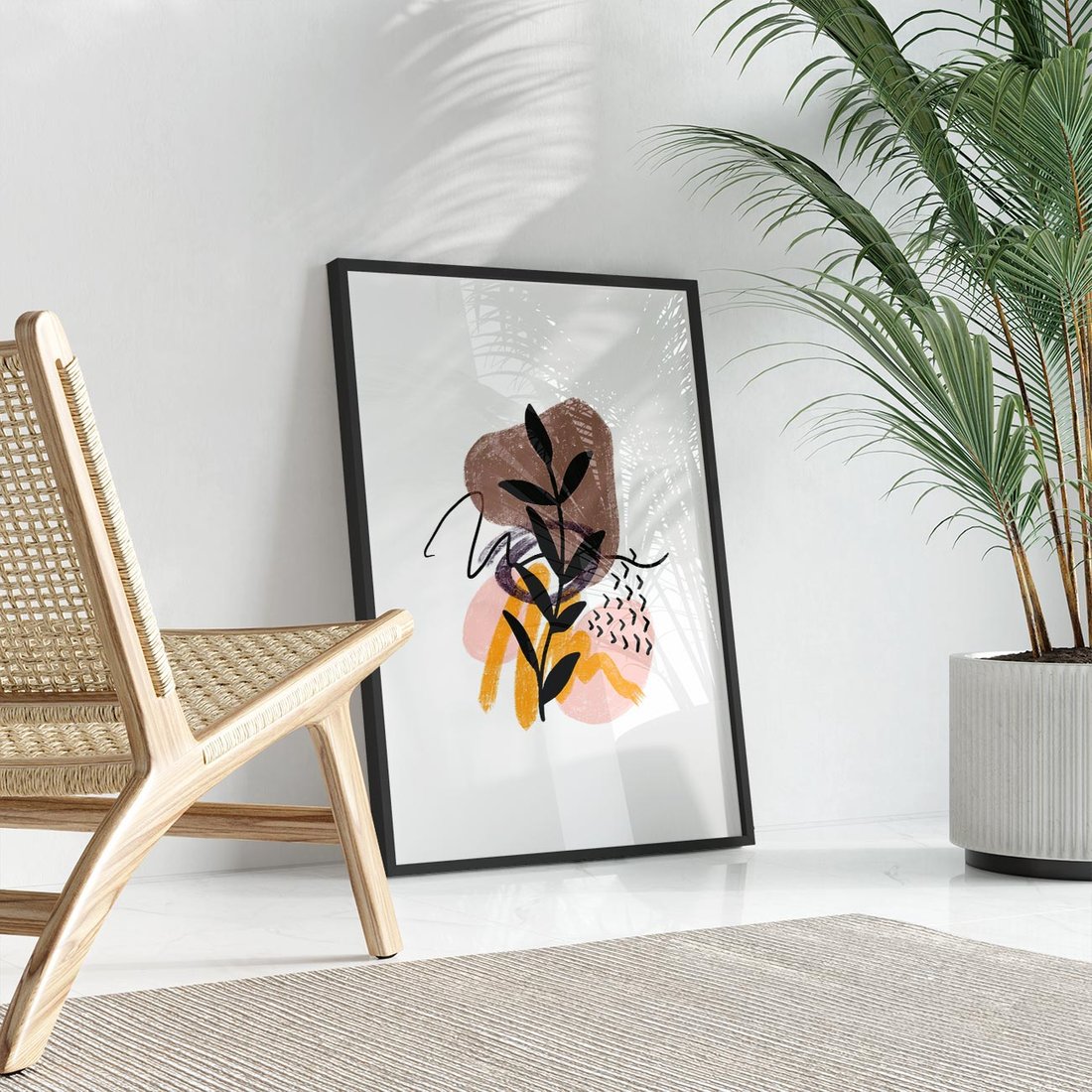 Nasza abstrakcyjna sztuka przedstawiająca liść gałązkę wykorzystuje akwarelowe plamy, które tworzą motywy roślinne. To artystyczne połączenie natury i abstrakcji wprowadza do Twojej przestrzeni subtelność i unikalny wyraz artystyczny, oddając piękno i dynamikę przyrody.