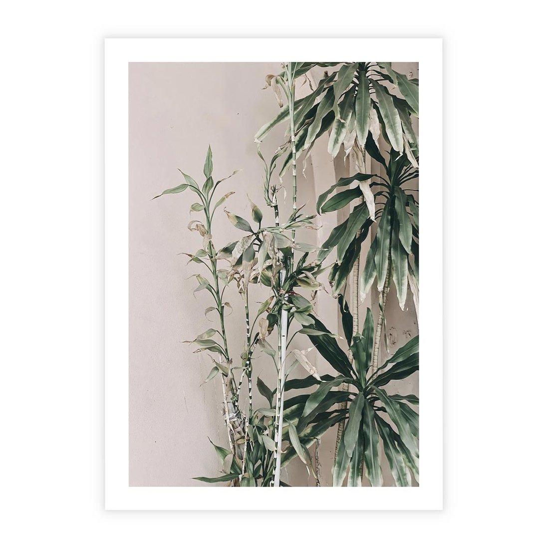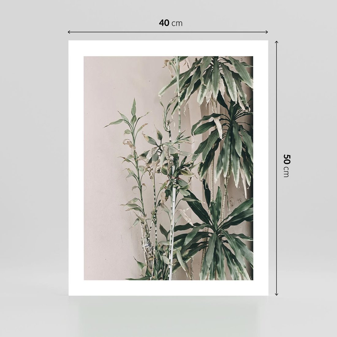 Plakat bez ramy 40x50 - Egzotyczna Kompozycja - liście, rośliny tropikalne na tle ściany