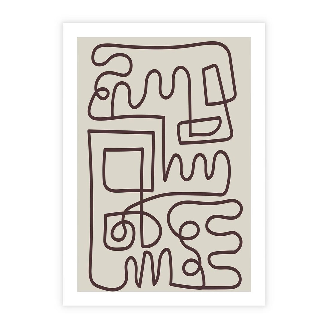 To nowoczesna boho grafika, która łączy abstrakcję, styl "one line" oraz elementy etniczne. Obraz jest kreatywnym połączeniem różnych stylów i motywów.