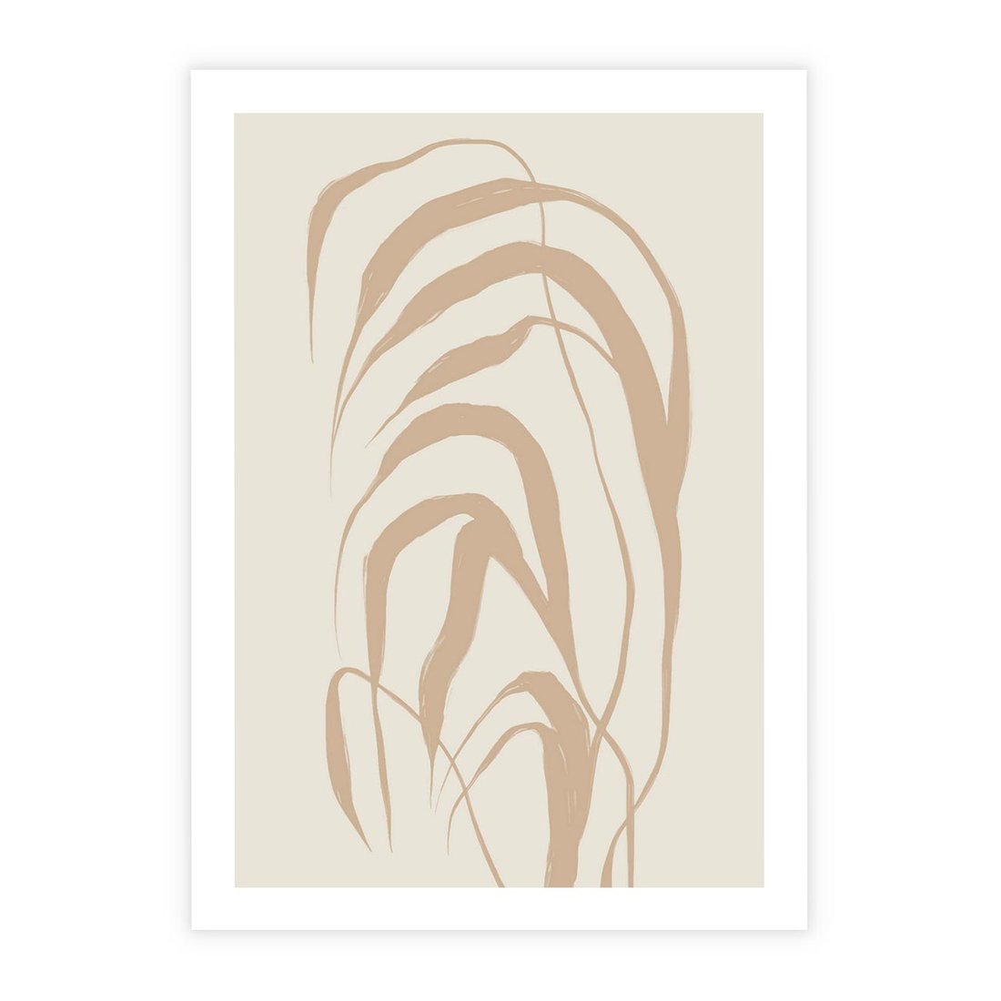 Nasz minimalistyczny plakat prezentuje spokojną kompozycję liści palmy w stonowanych beżowych odcieniach. To hołd dla prostoty natury, gdzie delikatne kontury liści tworzą spokojny rytm na tle. Ten plakat wprowadzi do Twojej przestrzeni nutę natury i spokoju, zachęcając do chwili refleksji w harmonii minimalistycznego designu.