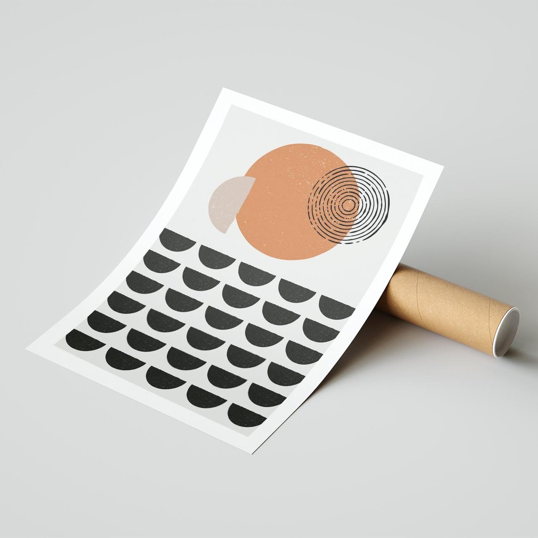 Plakat bez ramy 40x50 - Geometryczna Ekspresja - geometryczny graficzny obraz, pomarańczowe koło