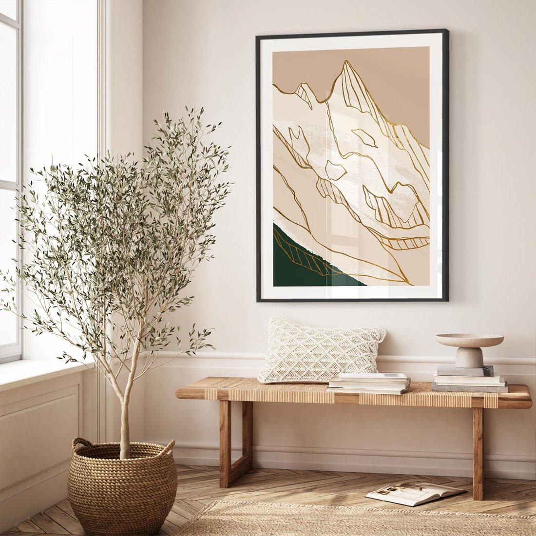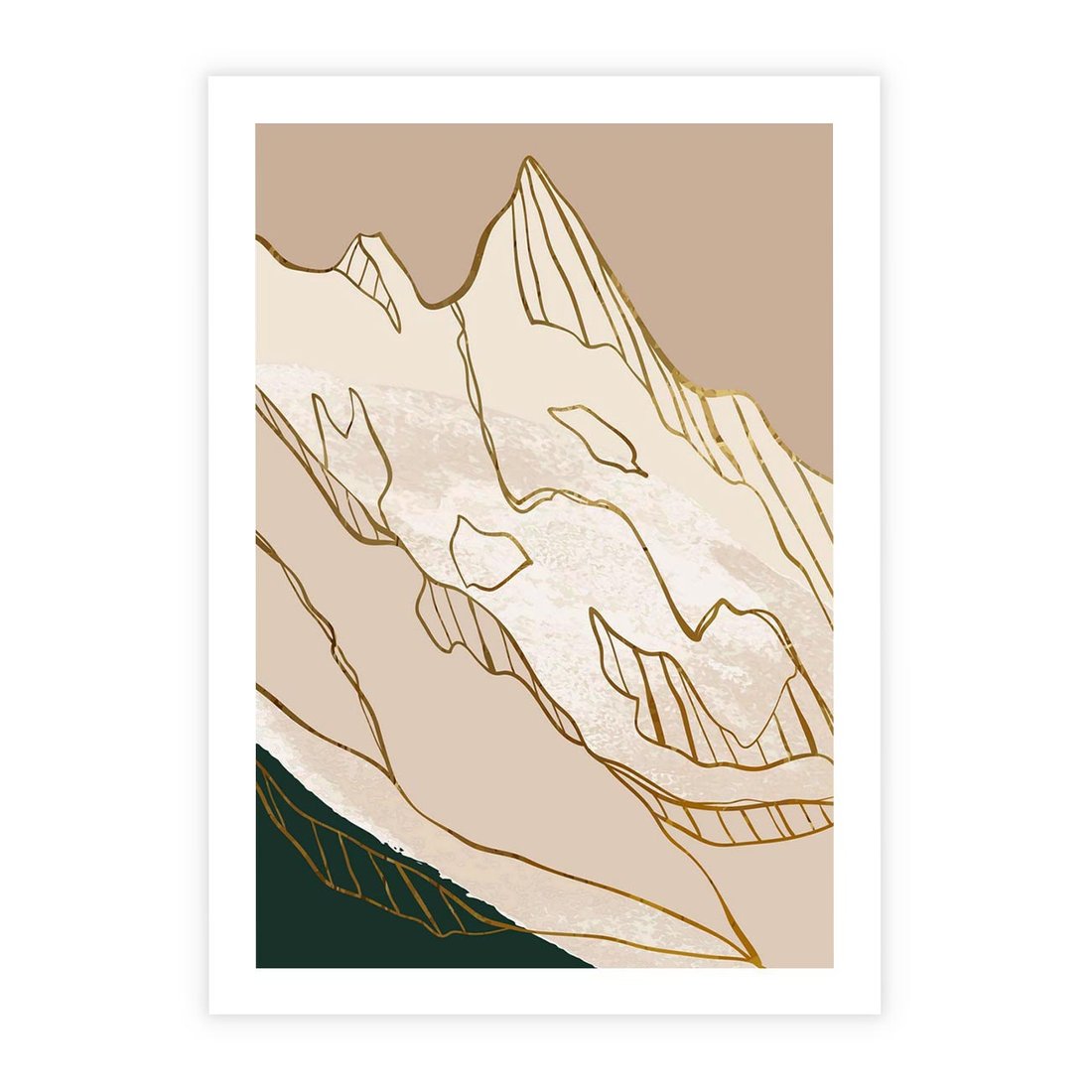 Plakat bez ramy 40x50 - Góry w Złocie i Minimalizmie - grafika, złote góry