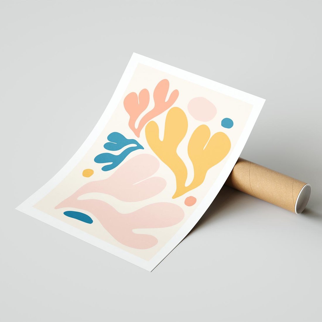 Ten nowoczesny plakat zachwyca abstrakcyjnymi, dziwnymi formami w delikatnych pastelowych kolorach. Stworzy unikalną atmosferę i ciekawy akcent w Twoim wnętrzu.