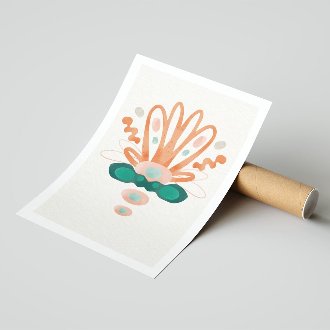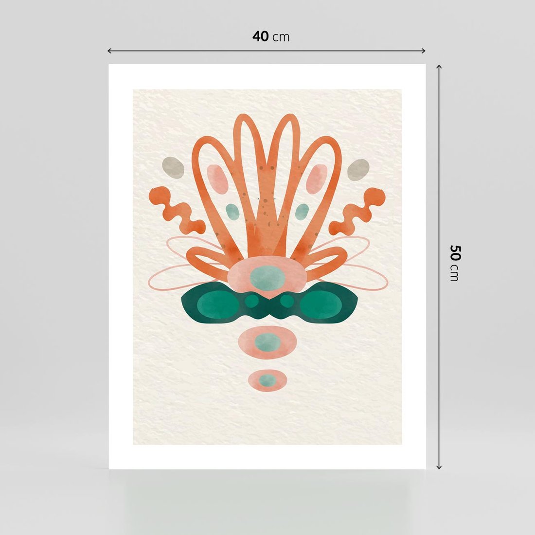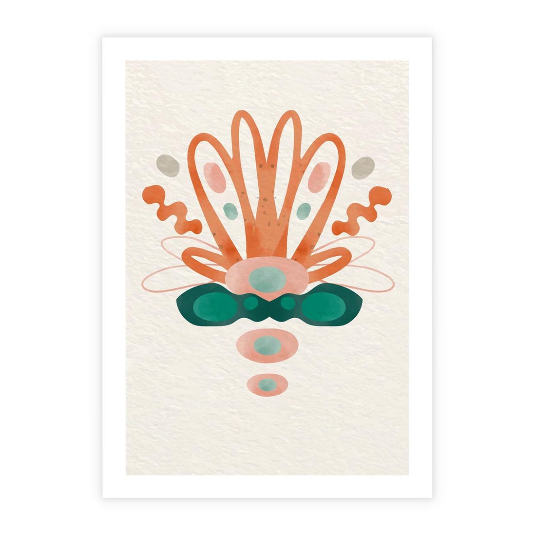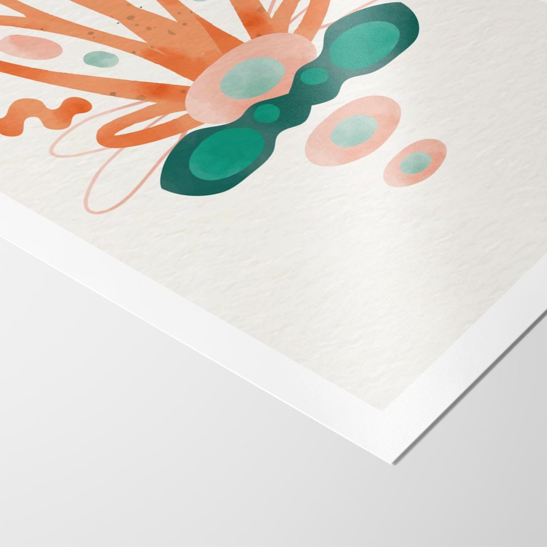 Plakat bez ramy 40x50 - Harmonia Nienormalności - akwarelowe abstrakcyjne kształty, zieleń i pomarańcz