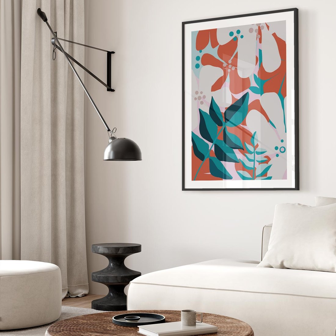 Plakat bez ramy 40x50 - Harmonijne Formy - abstrakcyjna kompozycja kwiatowych form, kolor zgaszone