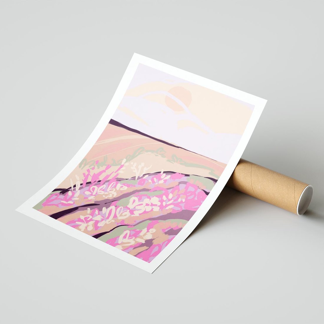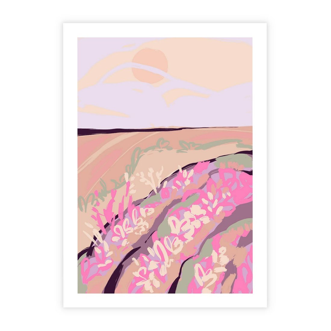 Ten nowoczesny plakat przedstawia pastelowy krajobraz z odcieniami różu, które przypominają romantyczny wschód słońca. To dzieło sztuki wnosi do Twojej przestrzeni spokój i harmonię, jednocześnie zachowując nowoczesny charakter. Idealny wybór dla tych, którzy cenią piękno natury i delikatne odcienie.