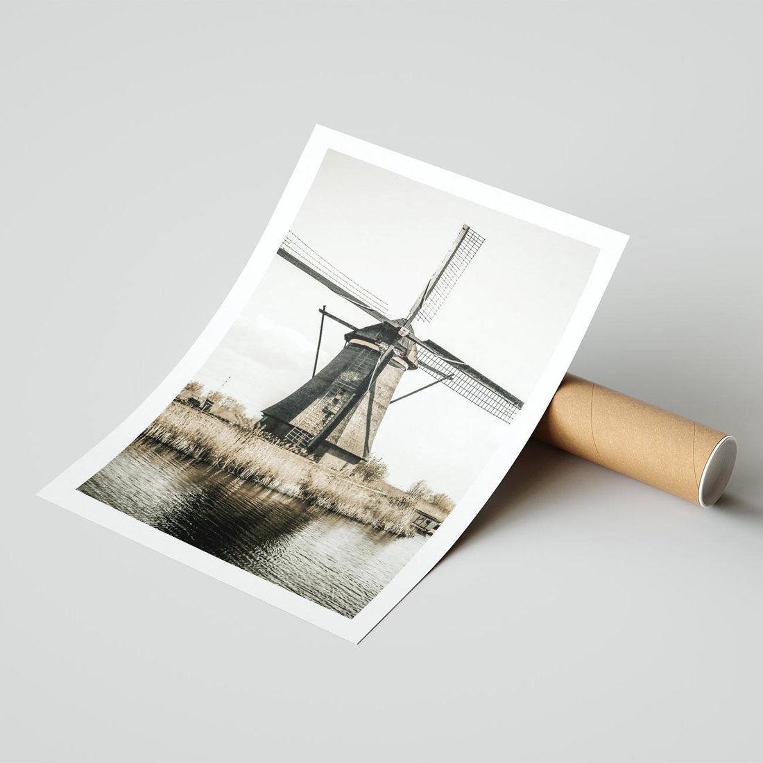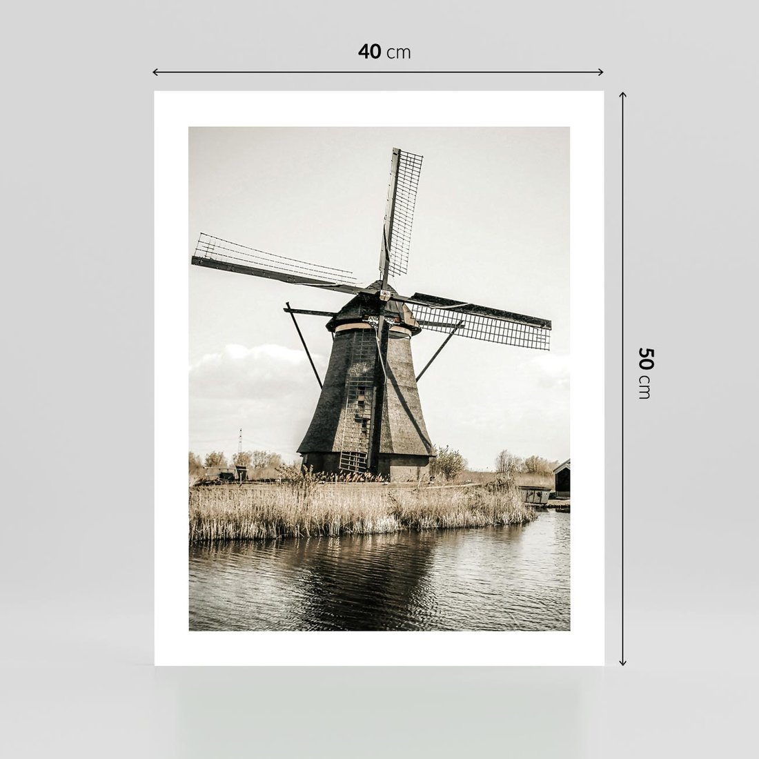 Plakat bez ramy 40x50 - Holenderski Wiatrak w Sepii - holenderski wiatrak, młyn