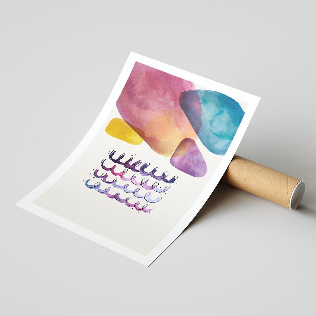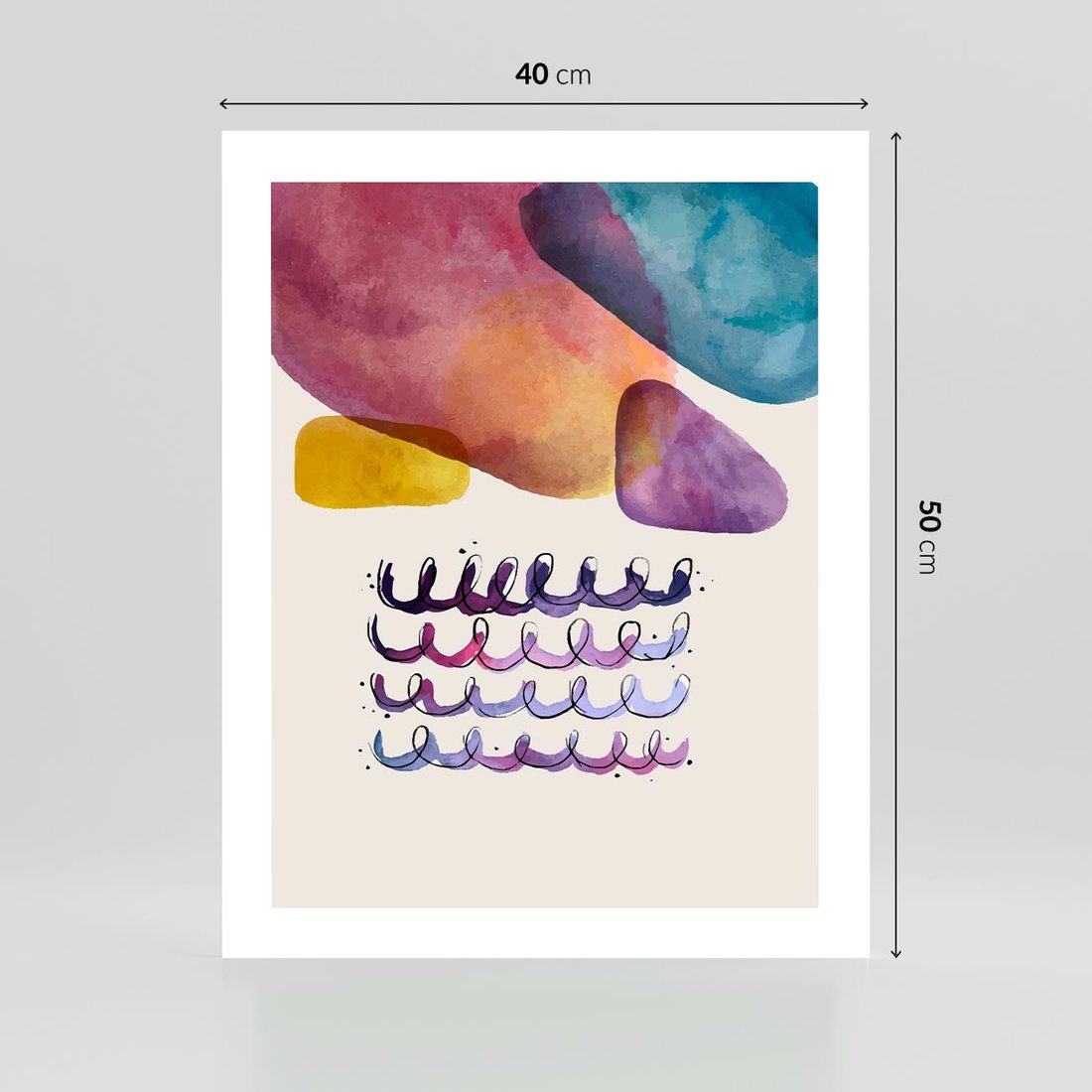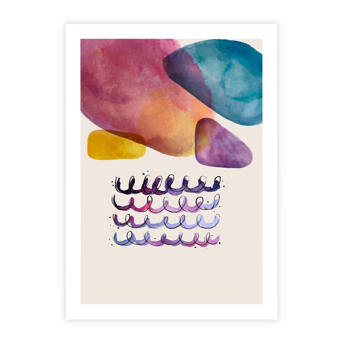 Nasz minimalistyczny plakat to zawiłe kolorowe pastelowe plamy w żywych odcieniach, z delikatnymi szlaczkami. Rozmyte kontury tworzą wrażenie subtelności i dynamiki, wprowadzając do Twojej przestrzeni artystyczną i spokojną atmosferę.