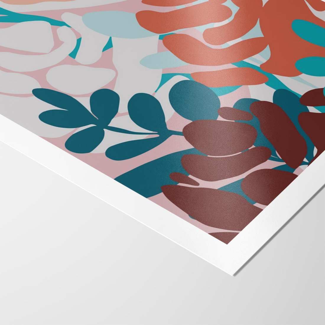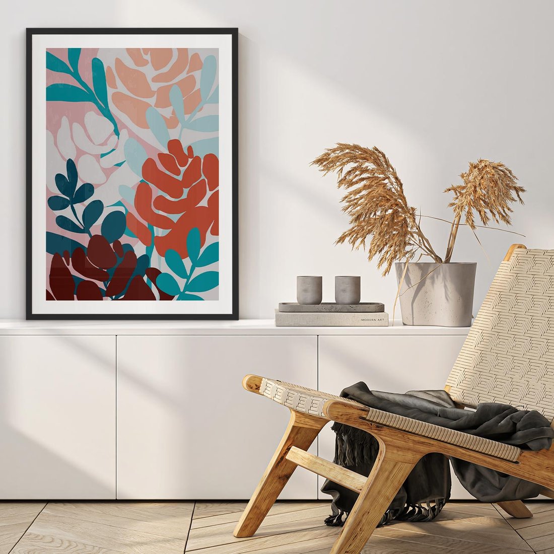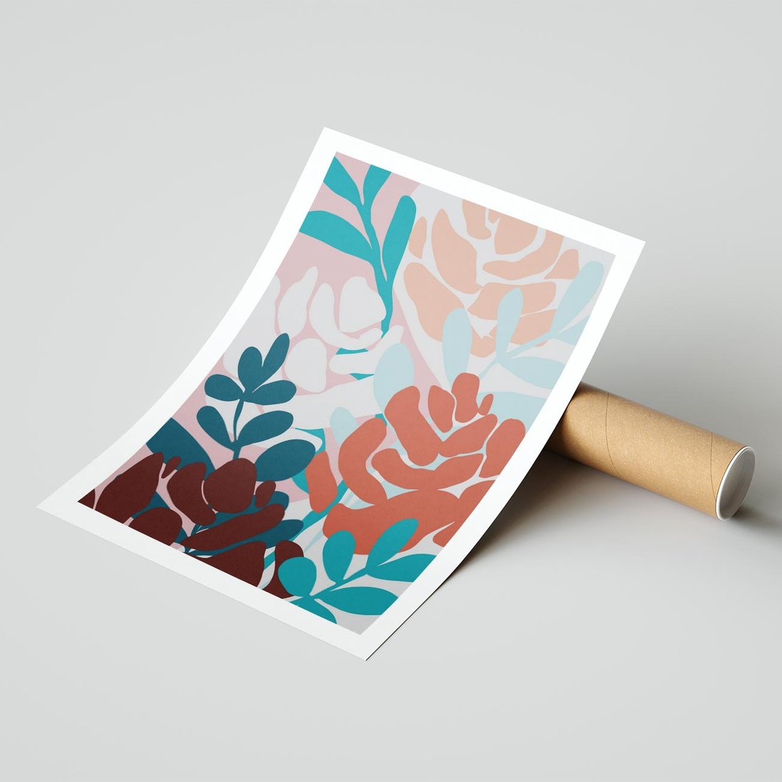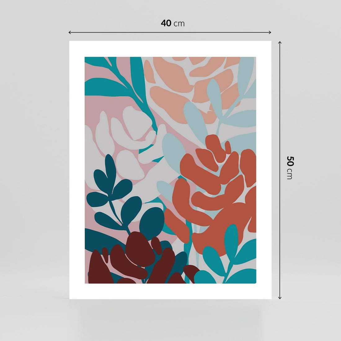 Plakat bez ramy 40x50 - Impresje Kształtów - abstrakcyjna kompozycja kwiatowych form, kolor zgaszone