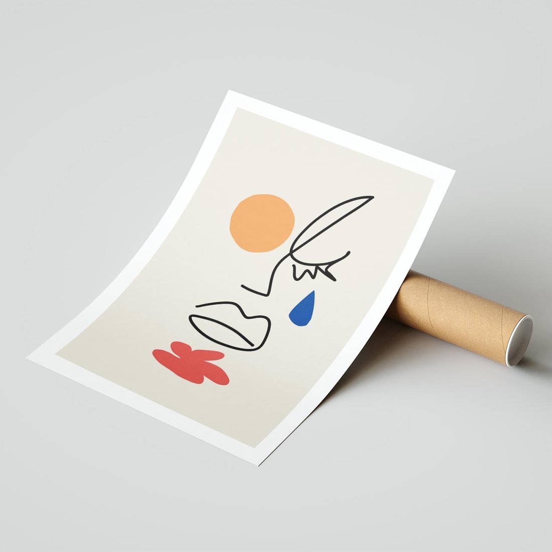 Abstrakcyjny obraz o charakterystycznym stylu, przypominający twarz inspirowaną techniką Picassa. Jedna linia szkicu tworzy unikalną kompozycję, wyrażającą emocje i wyjątkową formę.