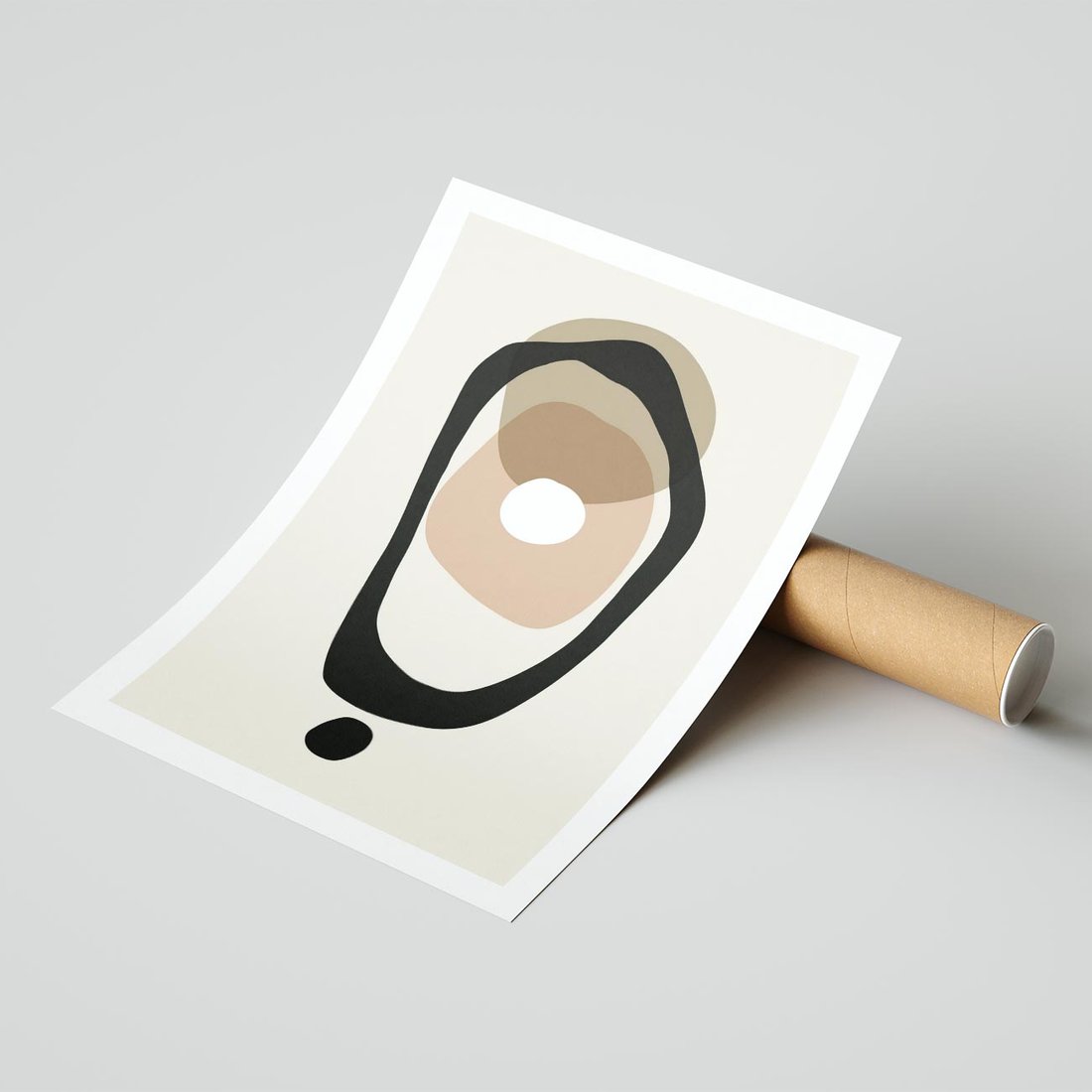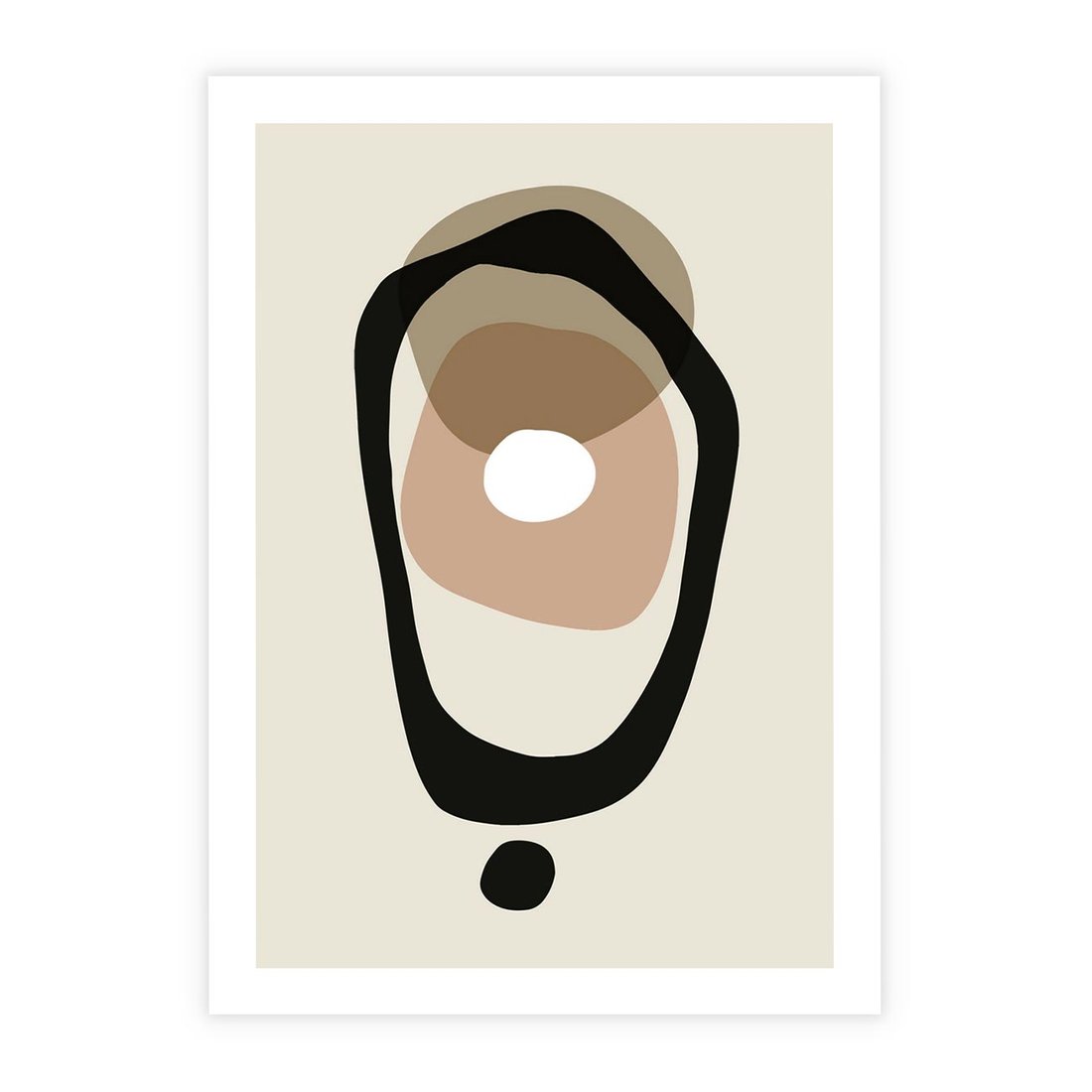 Plakat bez ramy 40x50 - Intrygujące Zaskoczenia - beżowa abstrakcyjna kompozycja, czarny akcent