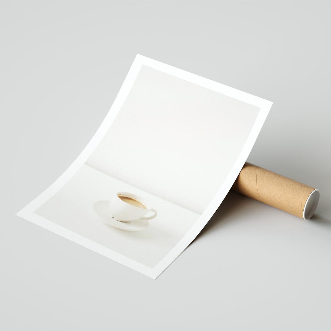 Plakat bez ramy 40x50 - Kawa w Prostocie - kawa w filizance, białe tłó