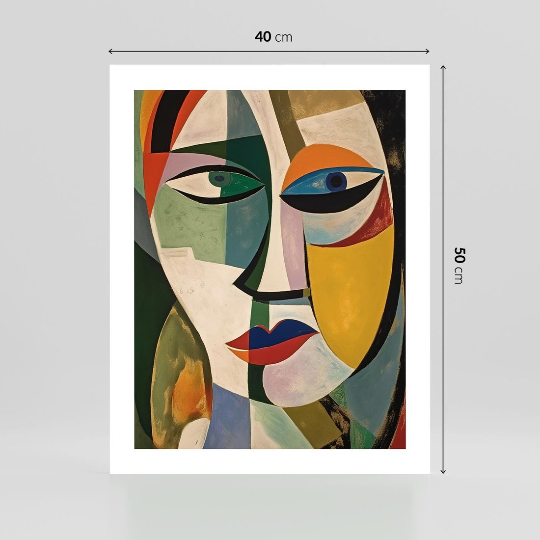Ten abstrakcyjny obraz olejny przedstawia twarz kobiety w stylu nawiązującym do Picassa. Żywe i ekspresyjne kolory tworzą dynamiczną kompozycję, ukazującą emocje i indywidualność. To unikalne dzieło sztuki wyróżni się w każdym wnętrzu.
