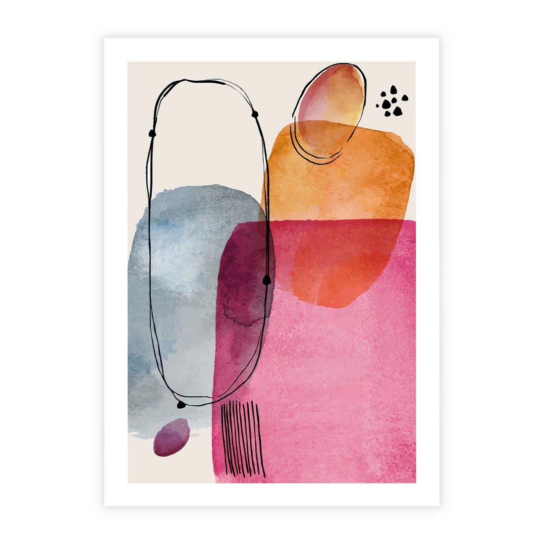 Kolorowe pastelowe plamy w rozmytych, żywych odcieniach, zdobione delikatnymi szlaczkami. To minimalistyczne dzieło sztuki, które wprowadza wibrację i subtelność do Twojej przestrzeni, tworząc kompozycję pełną wyrafinowanego minimalizmu.