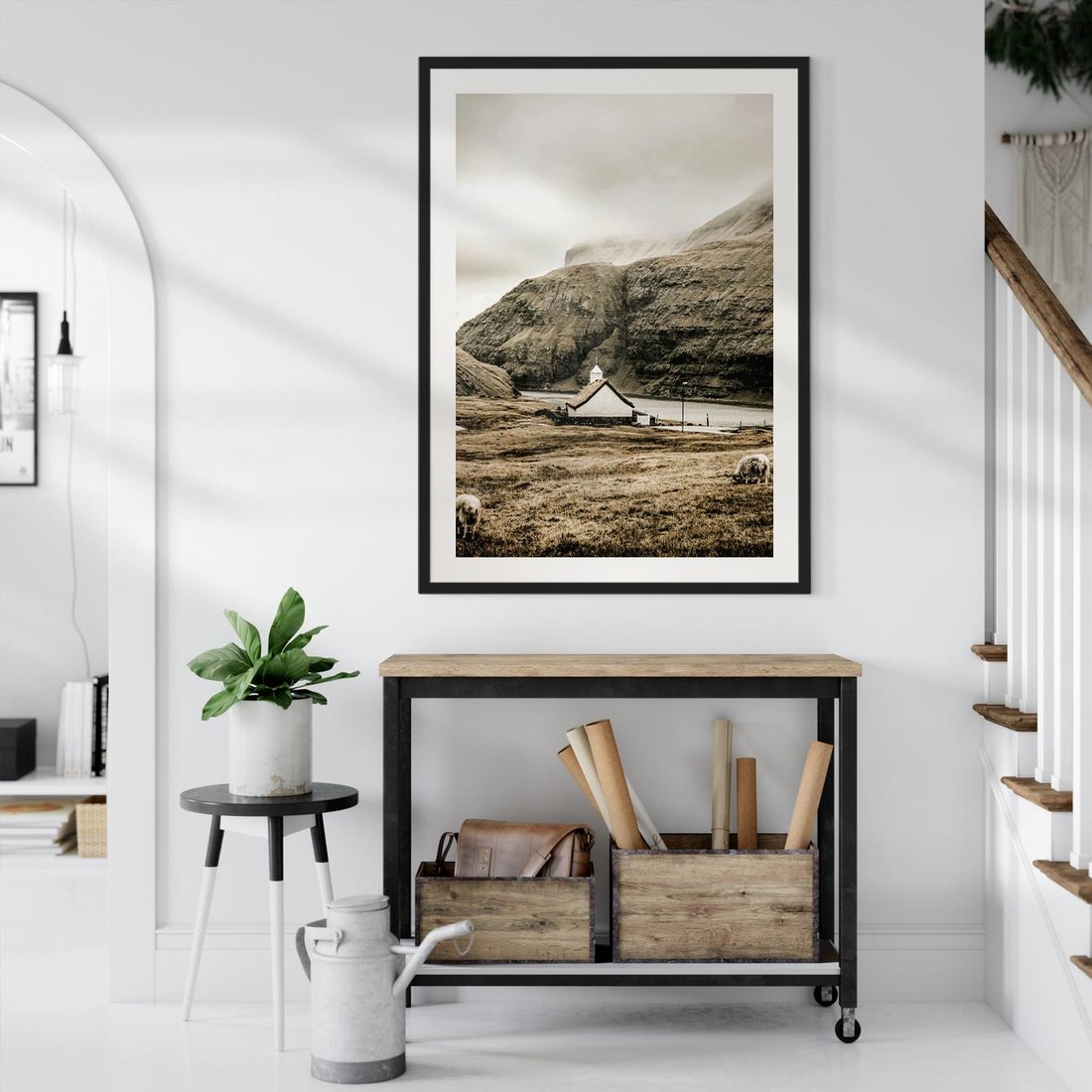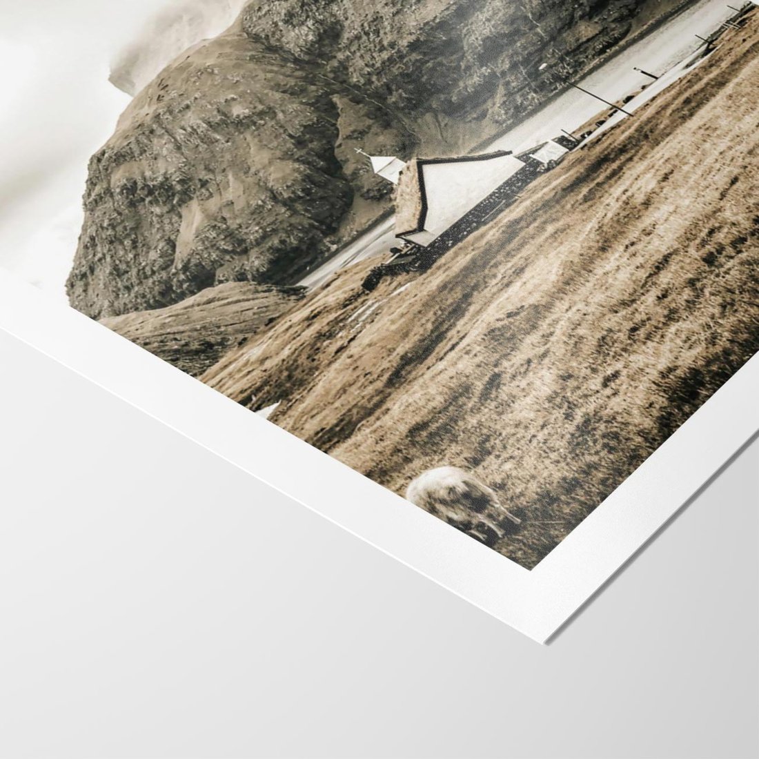 To malownicze ujęcie kościoła usytuowanego na wzgórzu w górach otoczonych mgłą, utrzymane w odcieniach sepii. Obraz ten emanuje atmosferą tajemniczości i nostalgią.