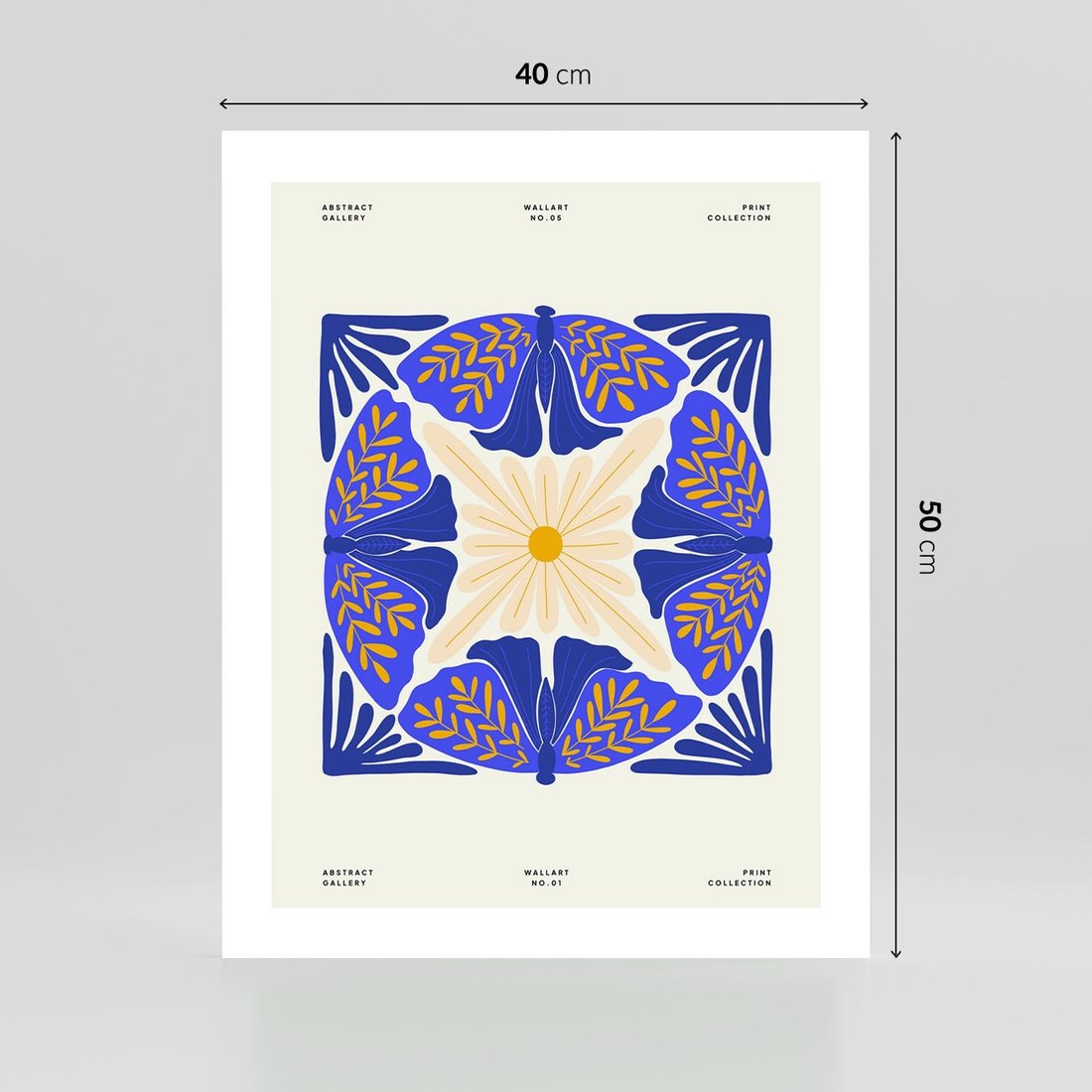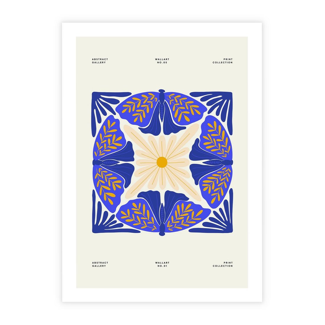 Ten nowoczesny plakat prezentuje abstrakcyjną boho kompozycję, gdzie granatowe ćmy spotykają się z kwiatami. Sztuka ta przenosi nas w magiczny świat natury, łącząc abstrakcję z elementami boho w oryginalny i inspirujący sposób.