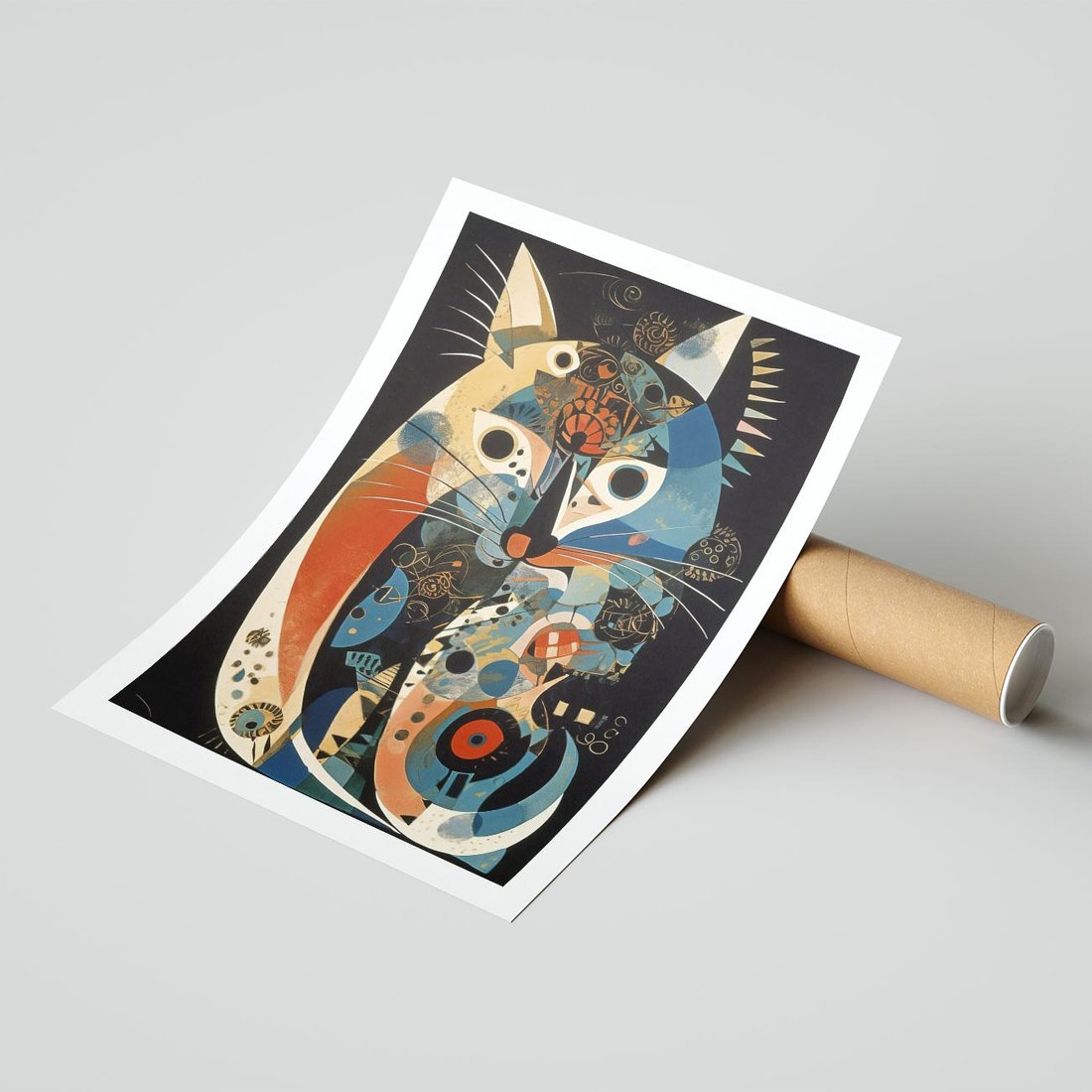 Plakat bez ramy 40x50 - Księga Surrealnych Wymiarów - abstrakcyjny obraz olejny, kot