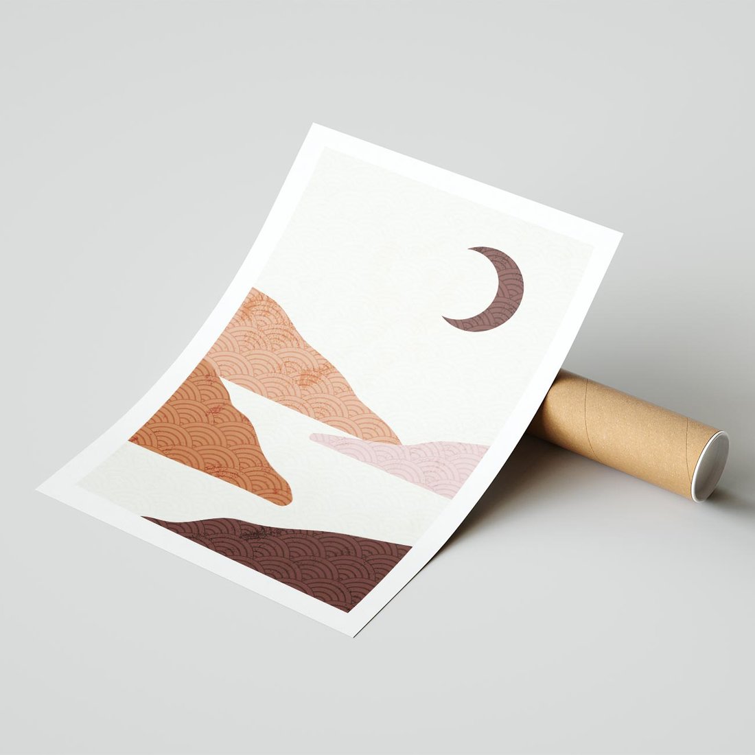 Plakat bez ramy 40x50 - Księżycowa Refleksja - nowoczesna sztuka, góry