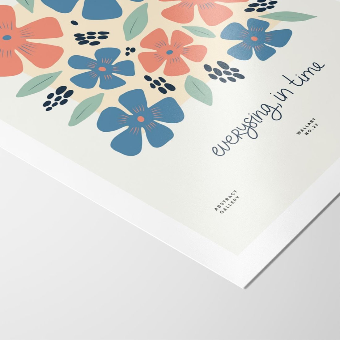 Ten plakat w nowoczesnej abstrakcji odkrywa piękno kwiatów, balansując z delikatną typografią. Kompozycja oddaje wyjątkową estetykę natury i sztuki, tworząc inspirującą przestrzeń.