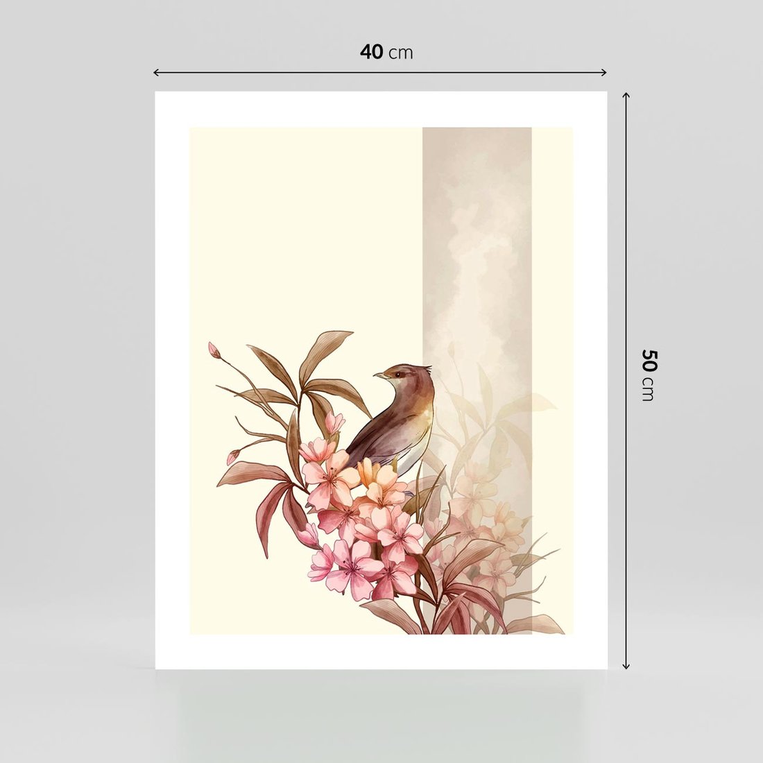 Plakat bez ramy 40x50 - Kwiatowe Zanurzenie - japońska sztuka, ptak