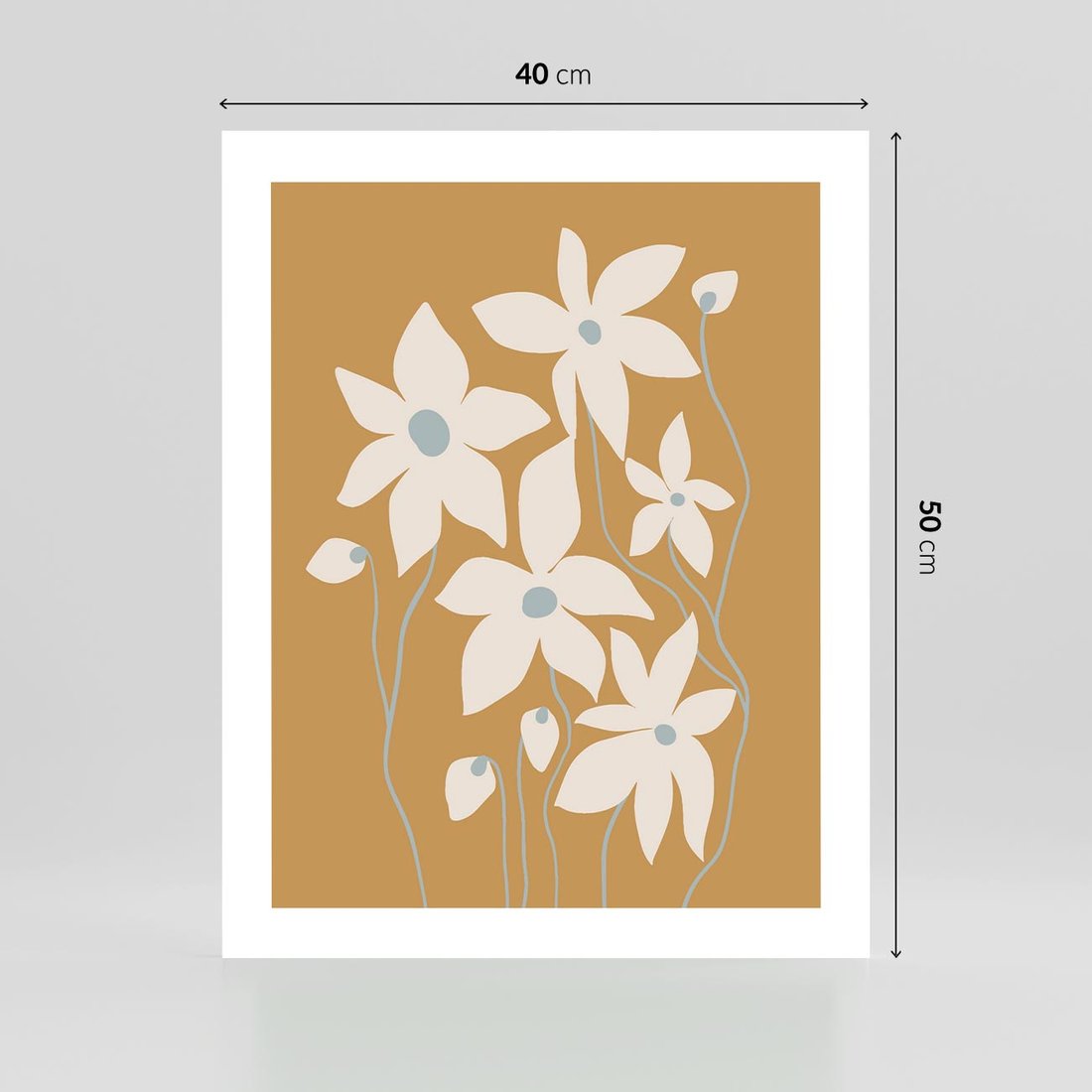 Plakat bez ramy 40x50 - Kwiatowy Spektakl - minimalistyczne kwiaty, na pomarańczowym tle