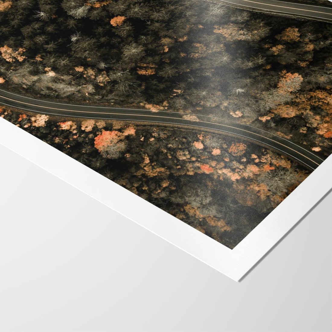 Plakat bez ramy 40x50 - Las i Droga w Kolorach Jesieni - droga, ujęcie z góry